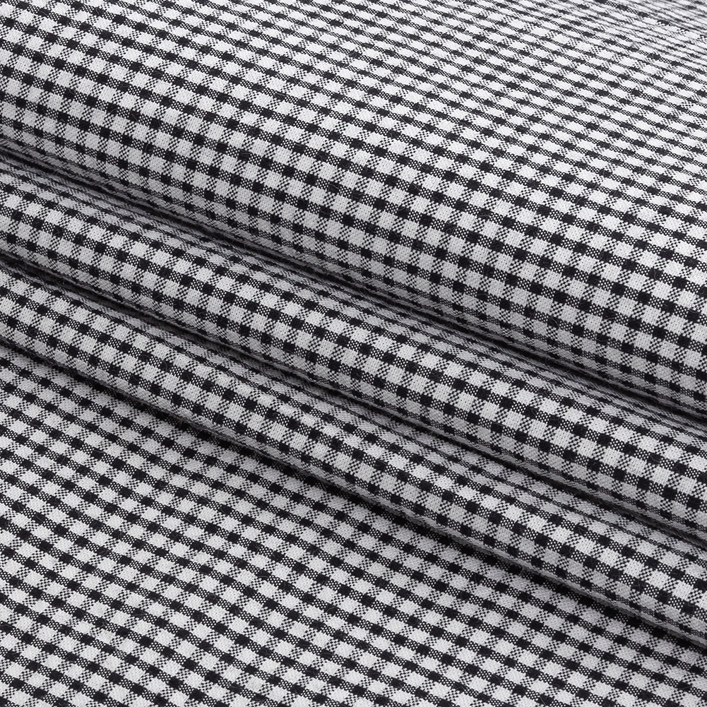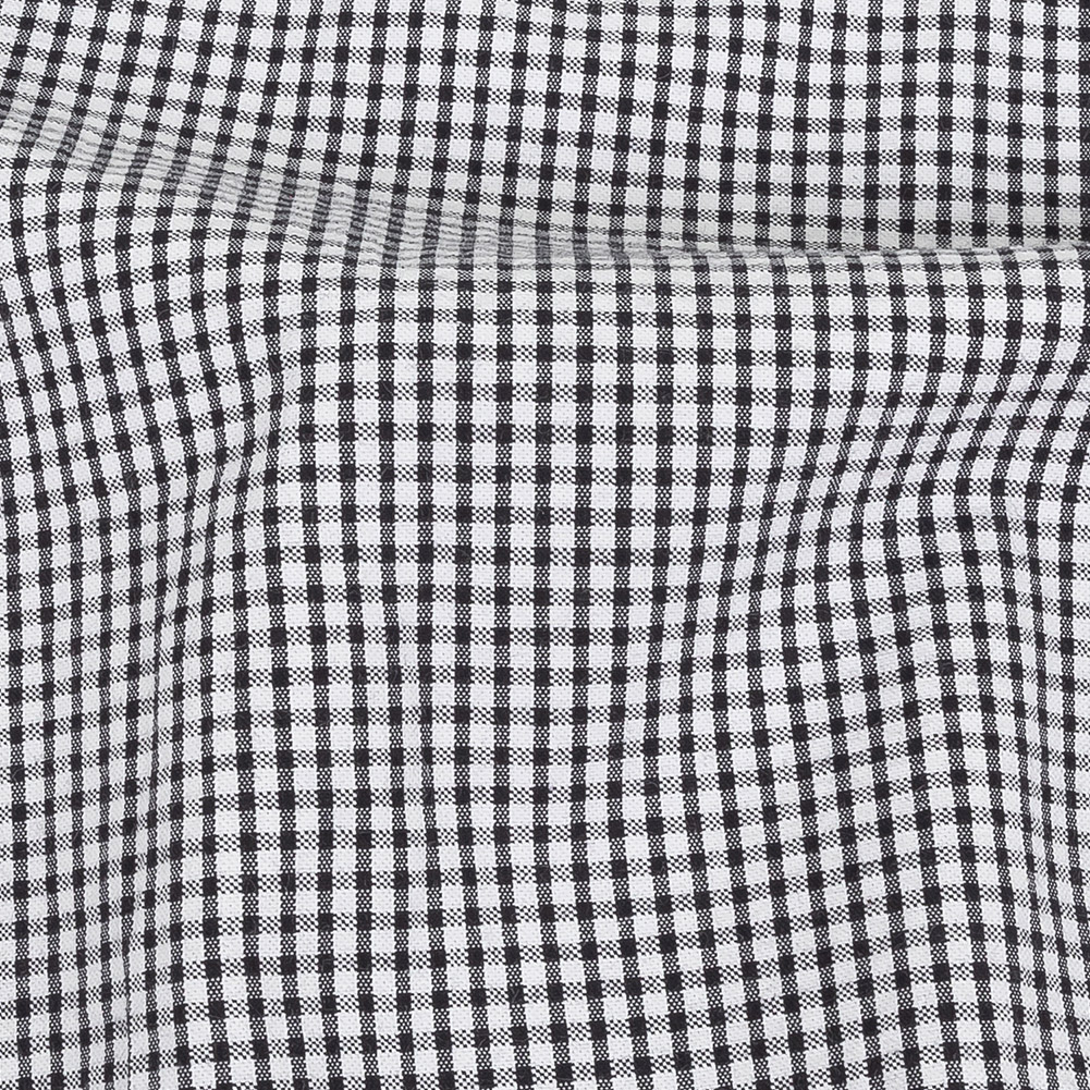 Add a youthful touch to your summer and springtime staples with this fun Olinda Black Gingham Organic Cotton Seersucker! A delicate checkered pattern with thin stripes of alternating jet black and deep grays decorates a textured, crinkled white surface—a result of the seersucker weave structure in which some threads are pulled tighter than others. A crisp, cool hand and a malleable drape combine to make this fabric ideal for the warmer weather months. Boasting a breathable, lightweight, and thin construction, fashion breezy summer dresses, playful shorts, and textured button ups! Mostly opaque, consider adding a lining for increased opacity or additional structure.MoodEarth Verified: For more information on Mood's sustainability initiatives, check out MoodEarth here.Please Note: The dye lot of this fabric has changed as of September 2025. If you had previously ordered this material, please order a swatch to ensure the new dye lot meets your color requirements.