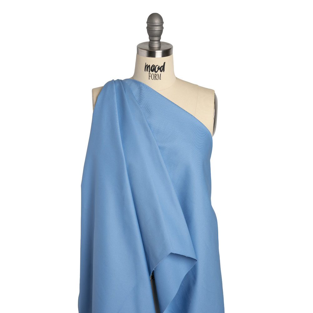 Keep the earth cool with this Ice Blue and White Organic Cotton Twill, featuring a medium weight, cool hand, and crisp drape—an eco-friendly way to stay fashionable.