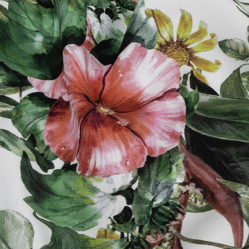 Gather in the garden with this Loreto Coral Florals and Foliage Organic Viscose Batiste! Pink blooms and yellow daisies dance with green and red-brown leaves of every shape across a white background, creating a cleanly natural visage. Cool and silky in hand, this batiste features a slight all-way give that'll make perfectly fitting projects a breeze. With a supple drape, craft flowing dresses and skirts, billowing blouses, and elegantly comfortable wide-legged pants that you'll be proud to wear, thanks to the eco-friendly nature of this organic viscose. Somewhat translucent particularly in lighter areas, add a lining for full opacity and additional structure where desired. This eco-friendly product is STANDARD 100 by OEKO-TEX® certified; tested independently and worldwide, the certification system evaluates finished, semi-finished, and raw textiles while thoroughly covering chemicals, harmful substances, and precautionary parameters.MoodEarth Verified: For more information on Mood's sustainability initiatives, check out MoodEarth here.