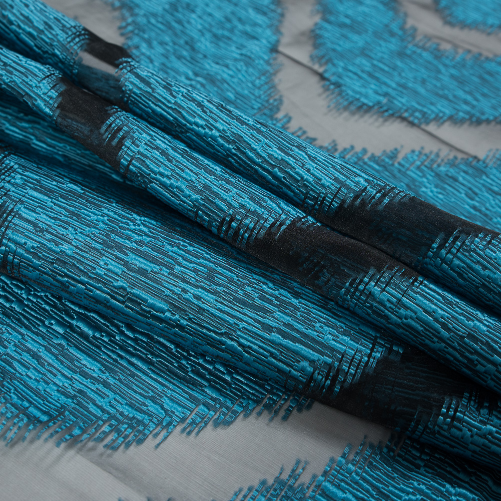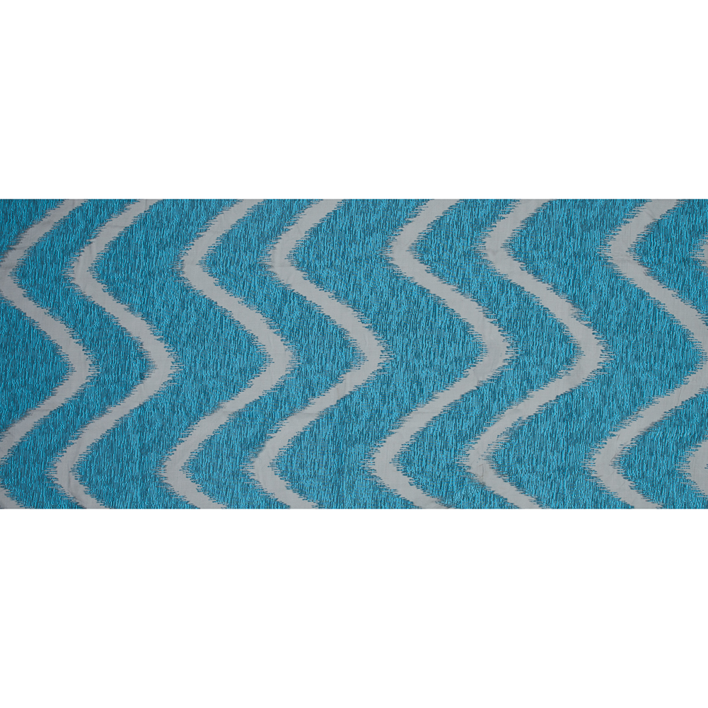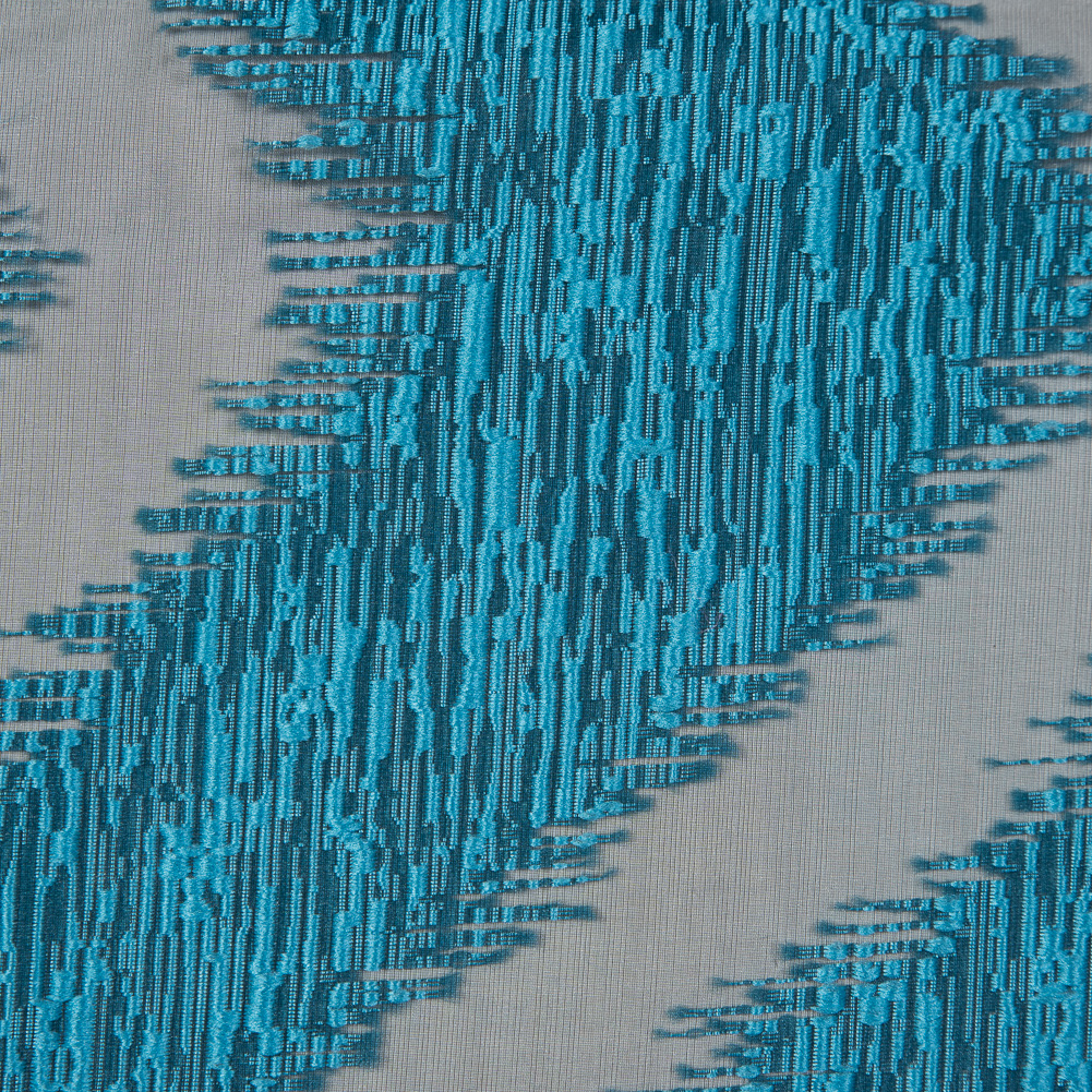 In a blue that is ready for spring and summer, make a grand entrance in this Chevron Organza Burnout Jacquard! The soft organza bursts with texture as a jacquard zig-zag stripes across it. Organza excels in creating evening attire and avant-garde silhouettes as it presents a voluminous drape. Thin and lightweight, use the sheer woven to create cocktail dresses, full skirts and one-of-a-kind bomber jackets. Insert a lining for more opacity, or use it as a sheer panel!