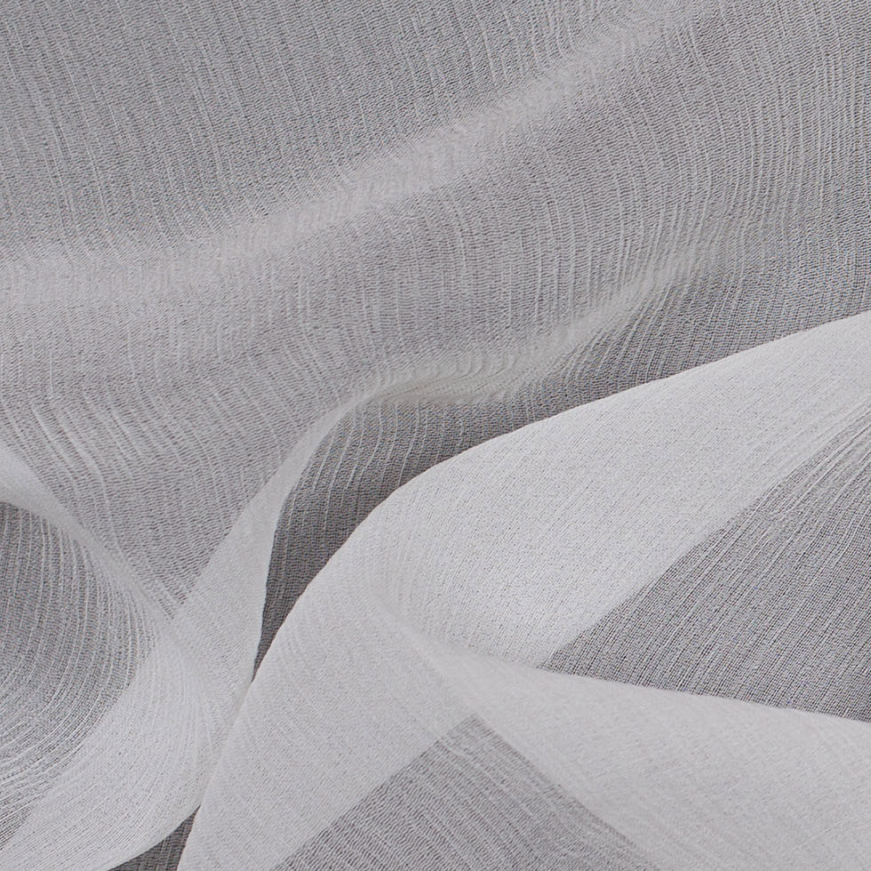 Elegance is first and foremost in this lovely White Crinkle Silk Chiffon, by Oscar de la Renta. A fluid and effortless drape makes this fabric brilliant to work with while allowing for a large span of creativity. This chiffon is completely sheer, contains a wonderful, yet subtle texture, and is utterly lightweight. It can be used for a variety of garments from elegant blouses to magnificent bridal gowns. It can also be used as a layering fabric for day dresses, both formal and casual.