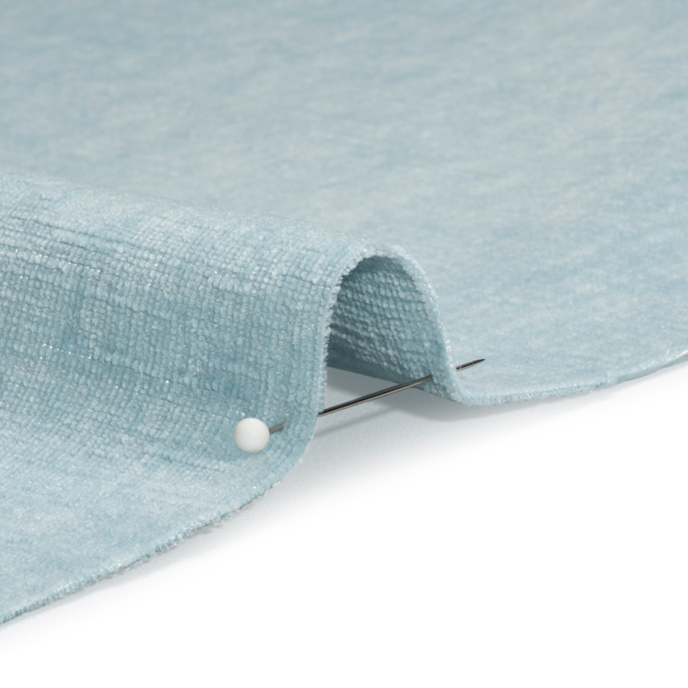Let the tide carry you to this peaceful Otta Seafoam Polyester Chenille Woven! The powder-blue face is expertly plush with a beautiful dimension created by slubs and lustrous fibers. Our selection of chenille, a fabric synonymous with luxe designs and cozy gatherings, softens hard edges, warms up spaces, and offers a beautiful array of colors that can blend into your home decor or stand out as a conversational piece. Admire the malleable drape as you easily follow the curves of armchairs, create memories on a sofa that gets as many compliments on its appearance as it does on its comfort, or pop plush texture throughout your existing upholstery with throw pillows.