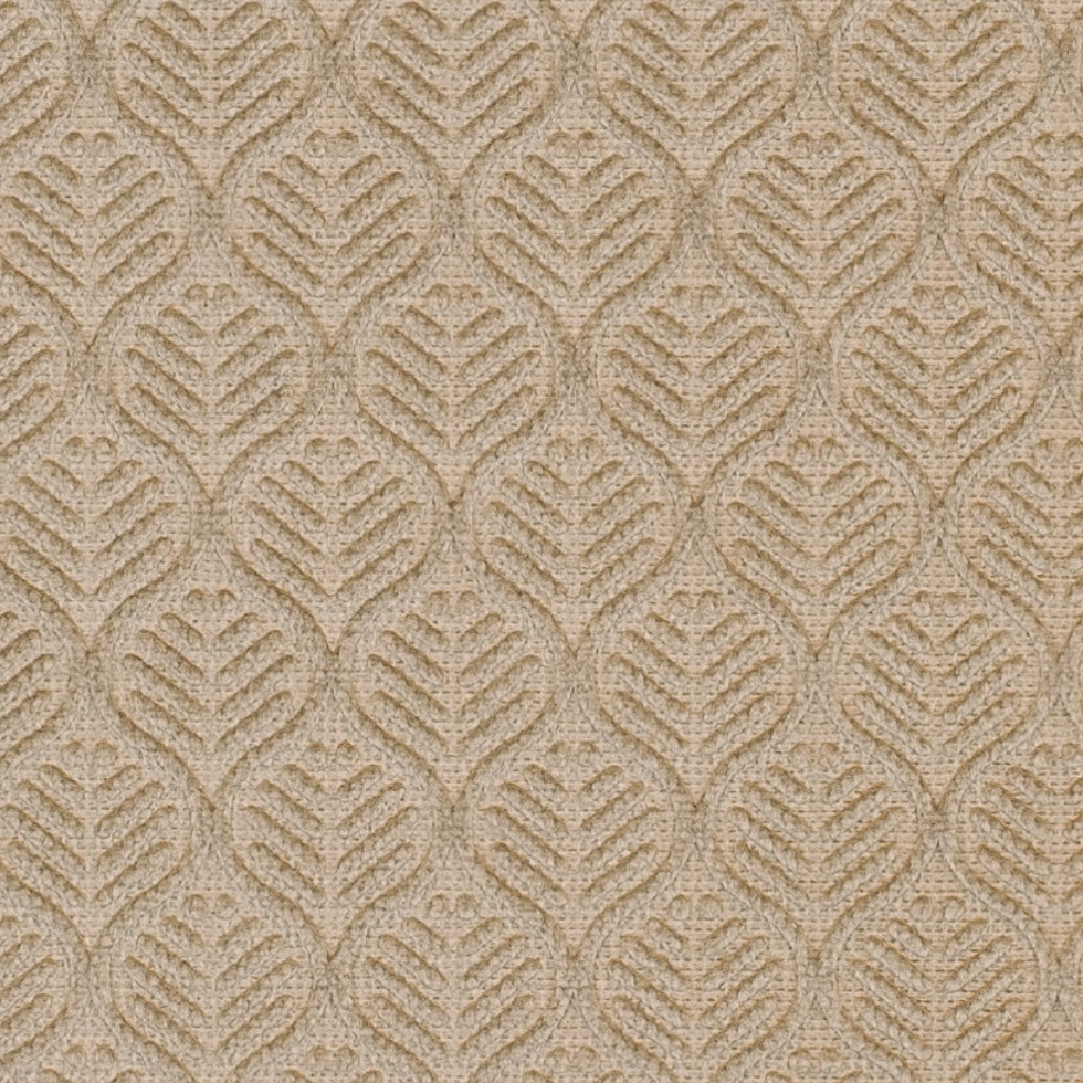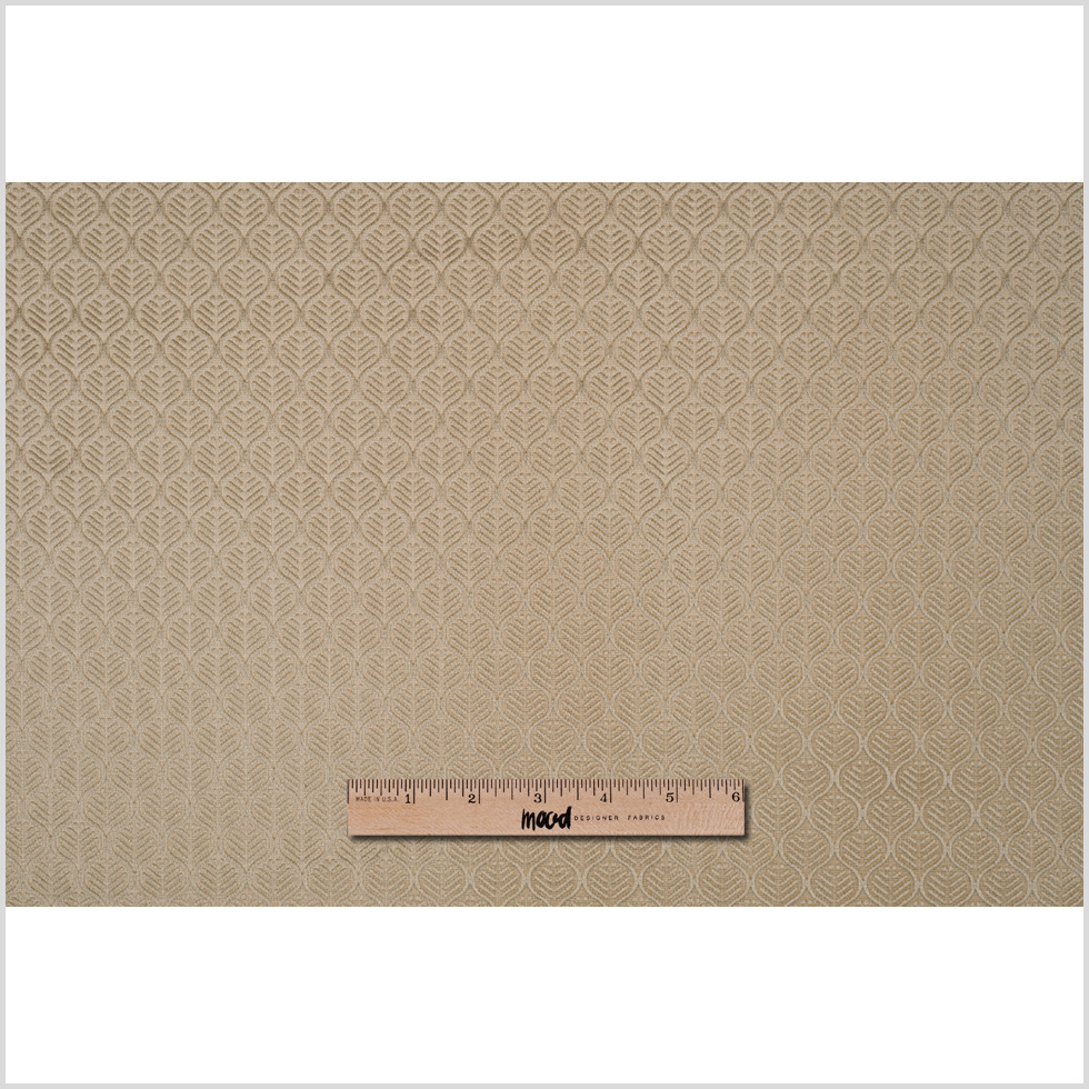 An attractive home decor velvet with a geometric imprint in a leaf design. Pale gold.