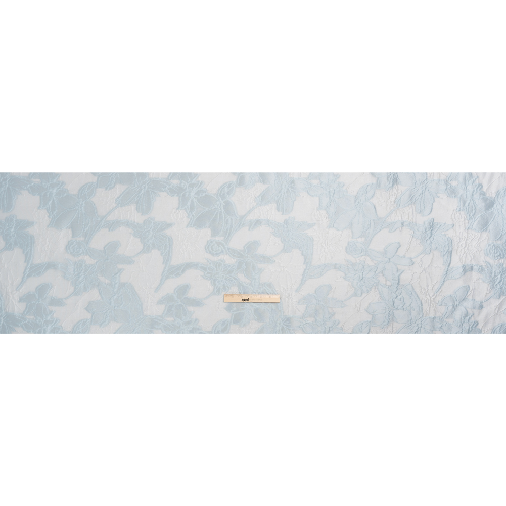 The morning fog lays like a blanket over this Pastel Blue and Gray Floral Sheer Luxury Brocade. Baby blue flowers grow with a little more opacity than their pale gray counterparts. The brocade weave raises the outlines of these flowers, creating the look of an embossed surface and bringing dimension to the mesh-like hand. Lightweight, lustrous, and semi-structured, create overlays of gowns or pair with a silk habotai lining for optimal luxury!
