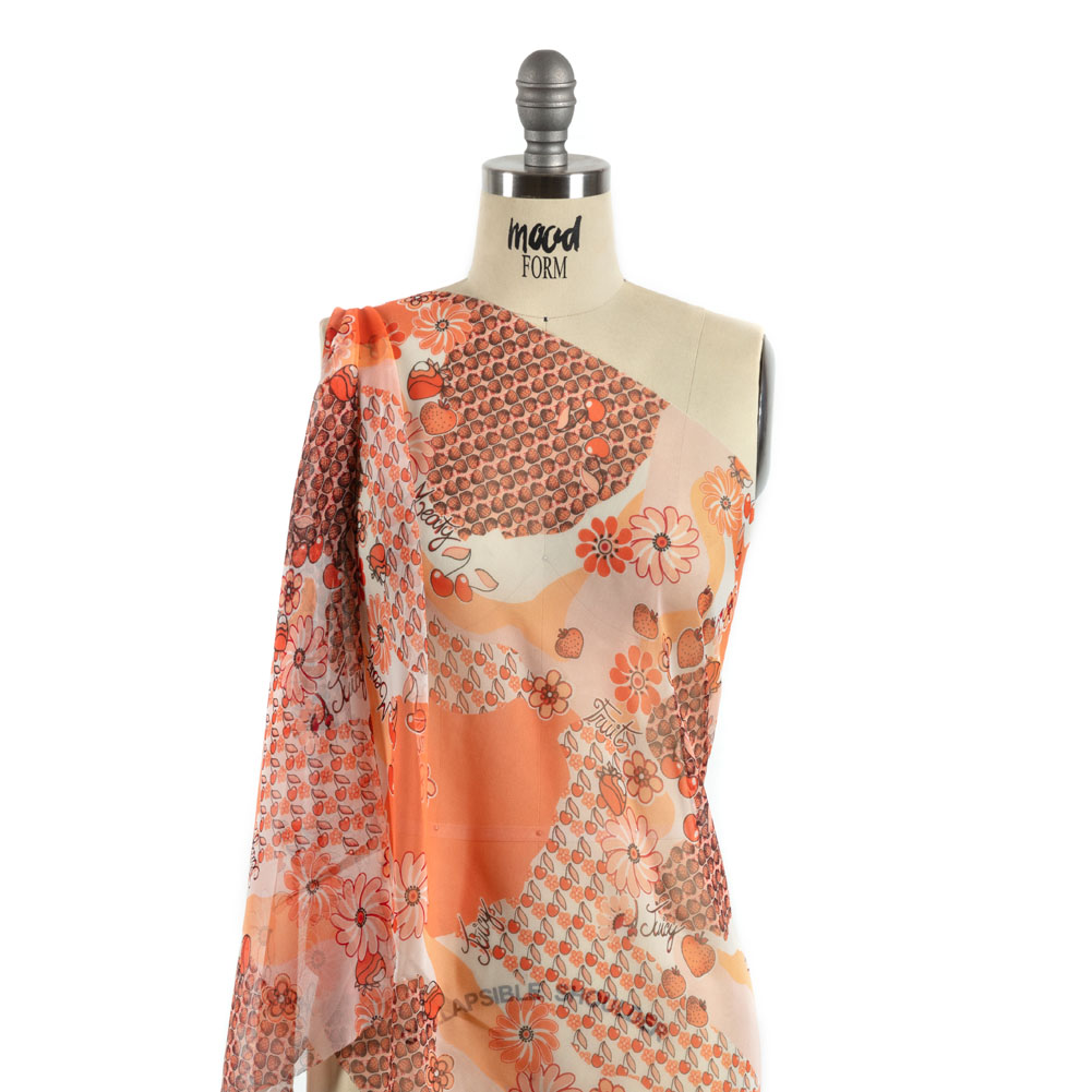Peach, Orange and White Juicy Fruits Silk Chiffon