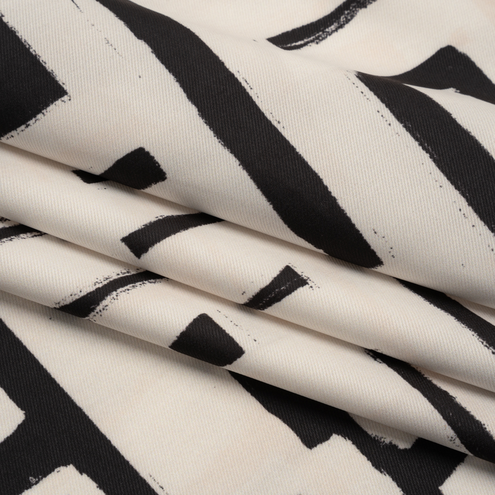 Peached Polyester Twill - Black and White Geometric Painting - Mood Exclusive Mobius Maze Print