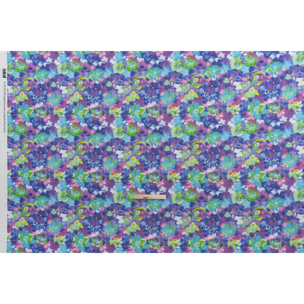 Peached Polyester Twill - Pink, Ultramarine and Lime Green Painted Flowers - Mood Exclusive Painted Posies Print
