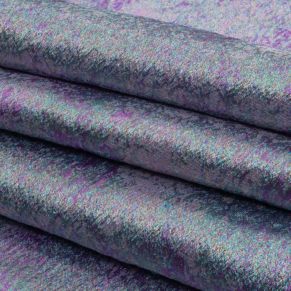 Find yourself inspired by galactic style? This Lavender, Turquoise and Gold Luxury Brocade is sci-fi chic and luxury, wrapped up in one! On an ever-changing, textural face, metallic lavender, turquoise and gold mix for a painterly, abstract effect. Pliable and voluminous in drape with a silken, yet pebbly texture, design wow-worthy evening gowns, daring circle skirt and top ensembles, or even suit jackets and trousers. Translucent, add a lining for full modesty and extra comfort, if desired.