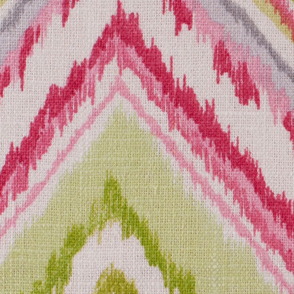 A delightful ikat print in bright colors of pink and green. Blend of linen and rayon. Perfect for lightweight upholstery, curtains, pillows and more.