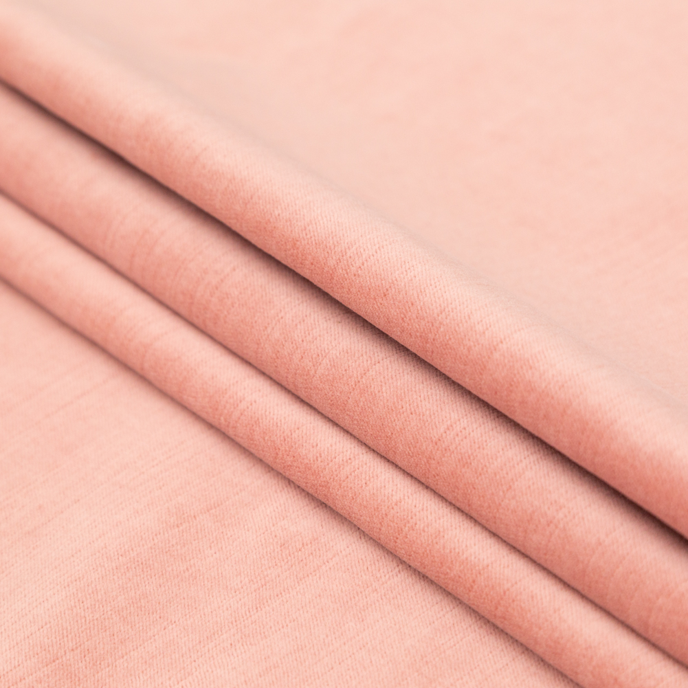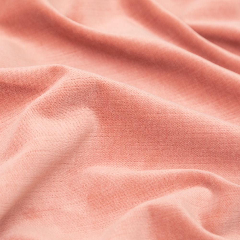 Dial up the charm with this Petal Pink Velvet. A low-cut pile produces a soft, luxe hand ideal rich, yet comfortable interiors. As a result of slub yarns that have a two-toned appearance, a property offered by the imitation dupioni backside, a slight sheen emanates from this material. Of a medium weight and opaque, drapery and upholstery applications are both suitable options for this non-stretch textile. Heighten spaces with eclectic vibes by adding structured curtains, loveseats, and chaises.