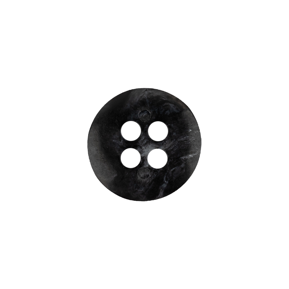 Mood carries an expansive array of plastic buttons in all shapes, sizes, and colors! Here, in particular, we have a Phantom and Light Gray Abstract Narrow-Rimmed 4-Hole Button with a convex face and back, and a bewitching mottled pattern of light gray and black.