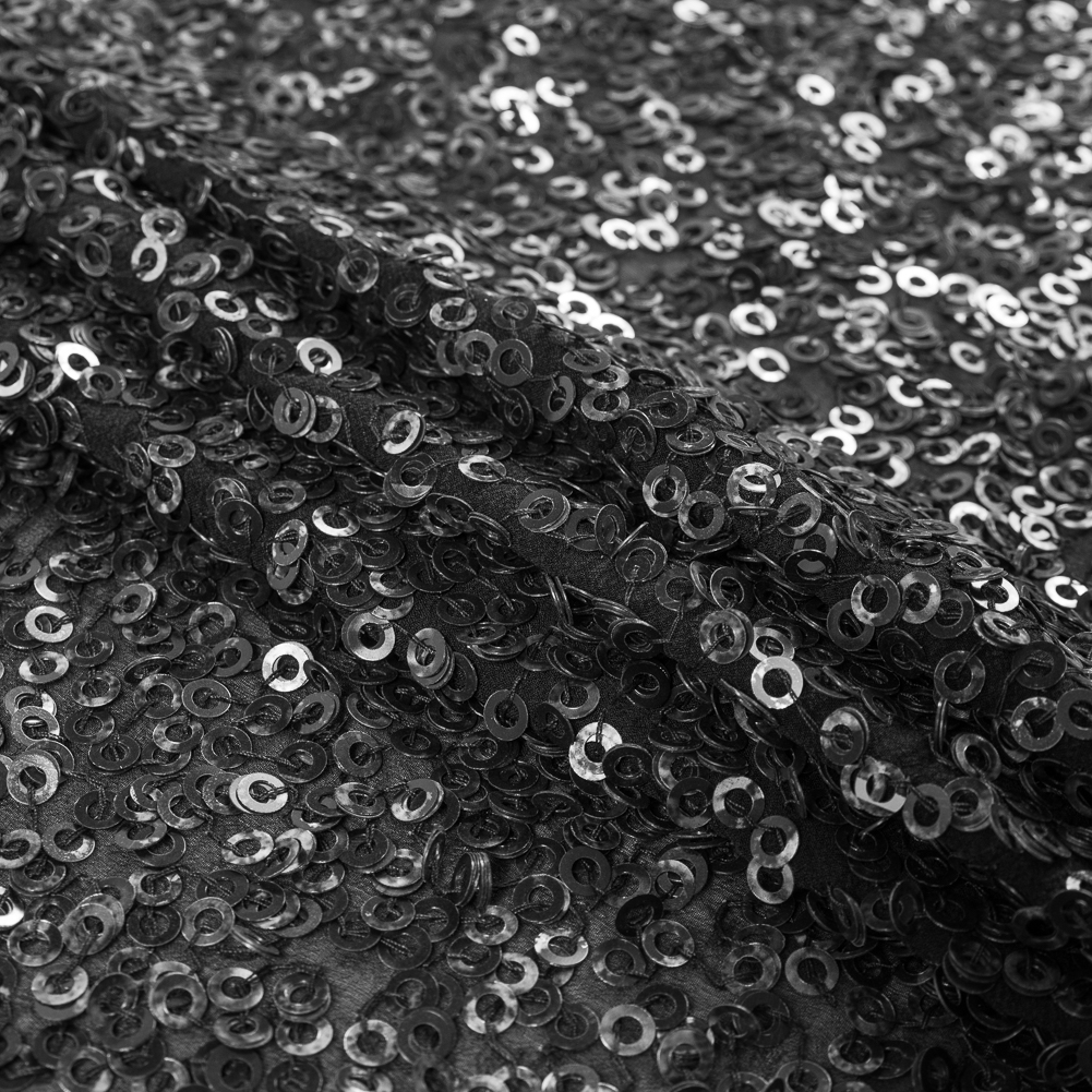 Mood presents a remarkable Phillip Lim Black Dyed All-Over Circle Sequined Fabric on a Silk Georgette.