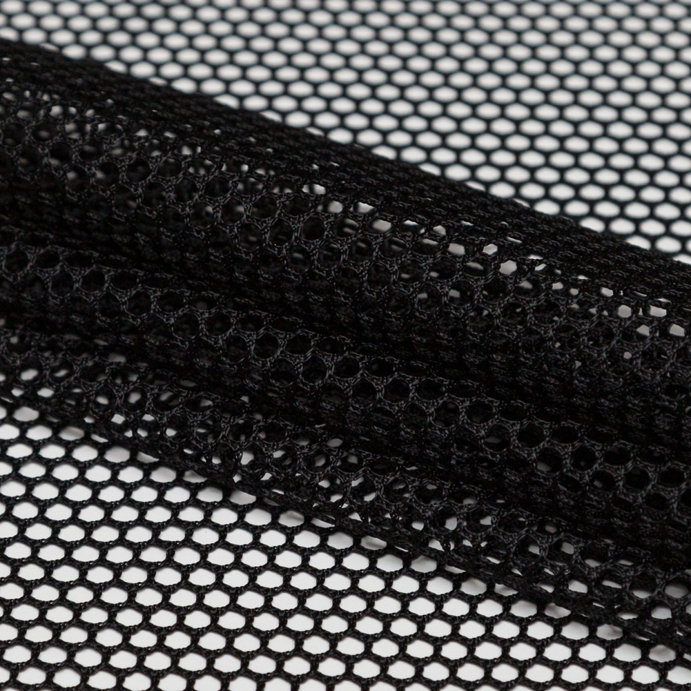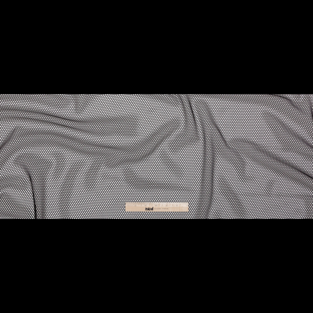 Strong and straightforward, Mood's Black Netting features hexagons connected like honeycombs, sweet with a subtle shine. Utilized by the esteemed designer Phillip Lim, its hand is textured and slightly tacky. A loose, fluid drape makes this fabric perfect for overlays on circle skirts; detailed paneling on the side of a pair of cigarette pants; and, sheer dresses worn over bright pink slips. It weighs 178GSM and features no stretch. This fabric is completely sheer; a lining is recommended for added opacity and/or structure.