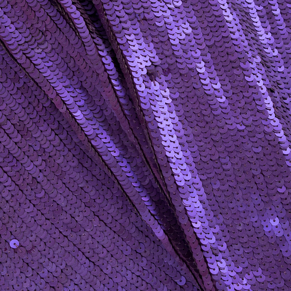 Phillip Lim's 'Royal Purple' sequined fabric is “Electric” and you will be totally “Turned On” by the many hues of purple, purple and more purple. This 4mm matte finished sequined fabric was tightly hand stitched to create a vertical linear repeat that mimics the scales on a beautiful tropical fish. Great for any fashion garment that will ultimately find its way to a major Gala, and elegant dining event, or used to dance the night away. Lining this fabulous fabric with a tonal or contrasting silk blend is highly suggesting for added comfort and durability.