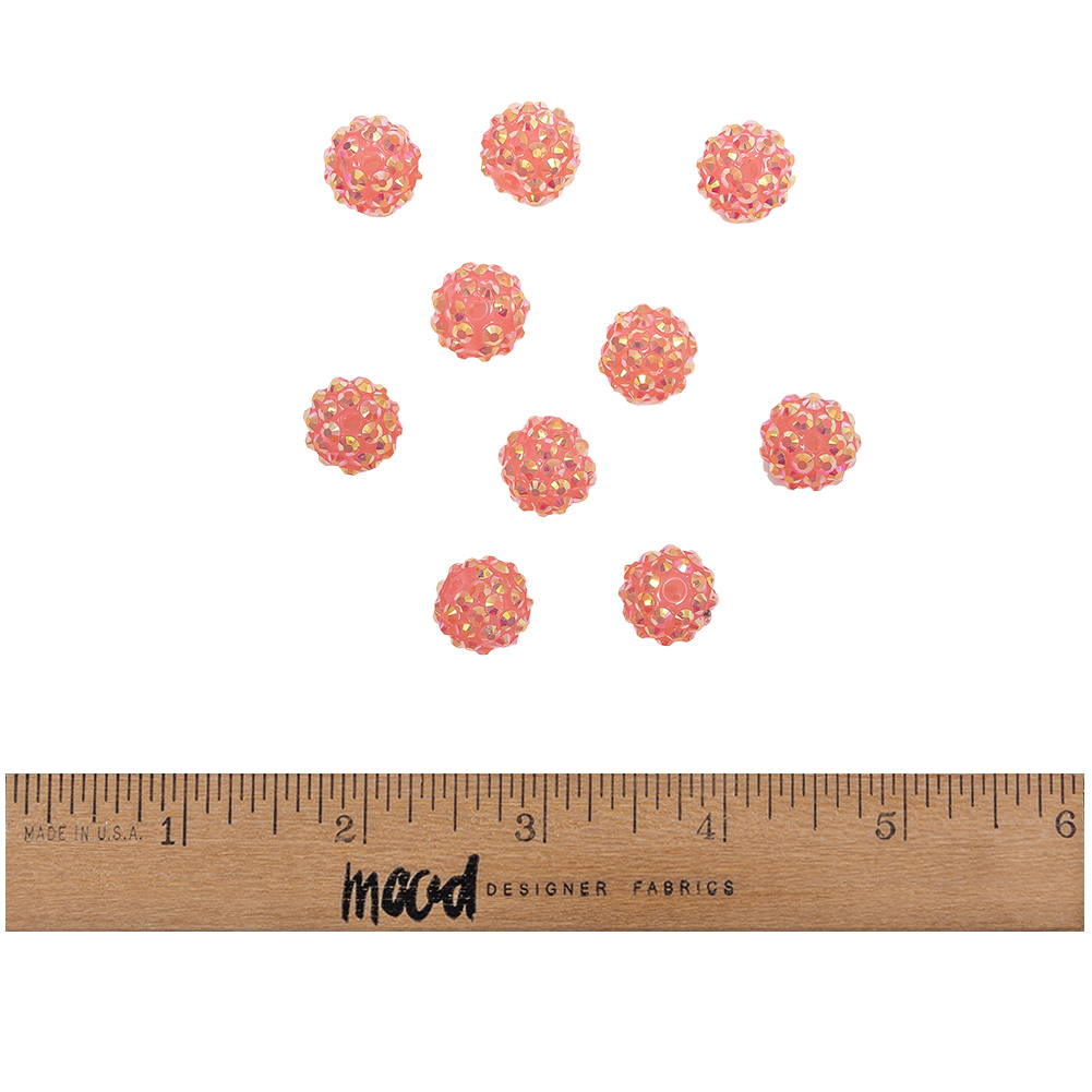 Who wouldn't feel like royalty in these Pink AB Rhinestone and Resin Faceted 14mm Beads?! Each coral pink bead features sparkling facets, with an iridescent finish for an extra magical look. Chunky and definitely funky, these beads can easily be added to home decor, costumes, crafts, or avant-garde fashion projects.Please note: This listing contains 10 beads, with each bead 14mm in diameter. WARNING: Cancer and Reproductive Harm - www.P65Warnings.ca.gov.