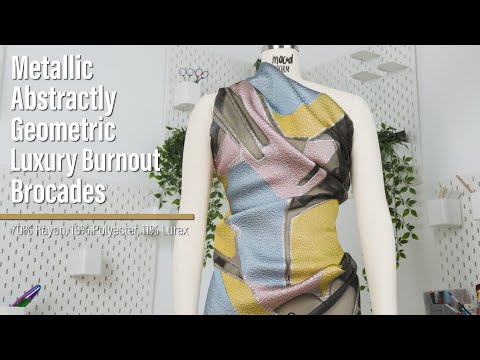 This Pink, Blue and Yellow Metallic Abstractly Geometric Luxury Burnout Brocade will be your most stunning creation yet. Displaying a metallic shine, abstract gold, blue, and pink shapes rise from the sheer black background with a spongy, rippled texture. It is of medium-weight and features a supple drape. A lining can increase structure if desired.Brocade: a textured fabric created by a complex weave. Burnout: a chemical treatment that turns areas of the fabric sheer. Together? A fabric for the runway—think camera flashes and oohs and ahhs. Iconic looks begin with bold textures, and this fabric knows a thing or two about visual appeal. From ball gowns to jackets, luxury burnout brocades help you take that first step out of your comfort zone and into a world of style.