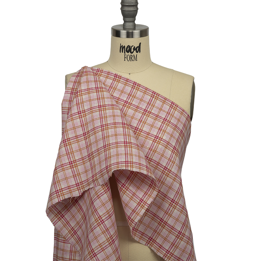 Pink, Orange and Cream Plaid Lightweight Linen Woven