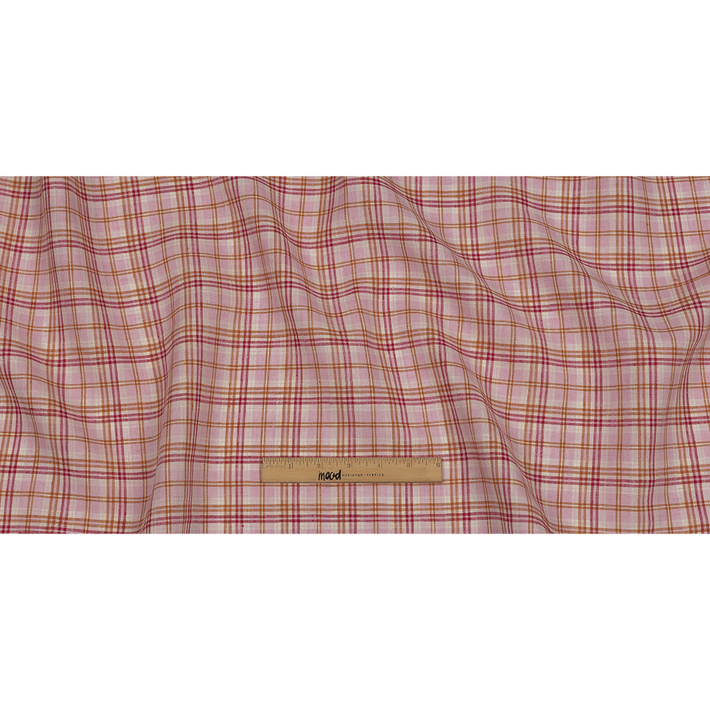 Popsicles are an amazing summer treat, but this Pink, Orange, and Cream Plaid Lightweight Linen Woven will last much longer! Featuring a fruity palette of pale pink, magenta, warm orange, and cream, this crisp linen offers a malleable drape and no stretch. With its lightweight, breathable feel, create statement blouses, pinafore dresses, mini skirts, wide-legged pants, and more. Somewhat translucent, a lining can be used to increase opacity and for a polished finish when desired.