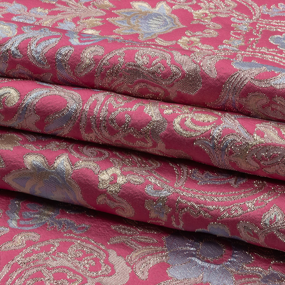 Pink, Pale Blue and Silver Floral Damask Metallic Luxury Brocade