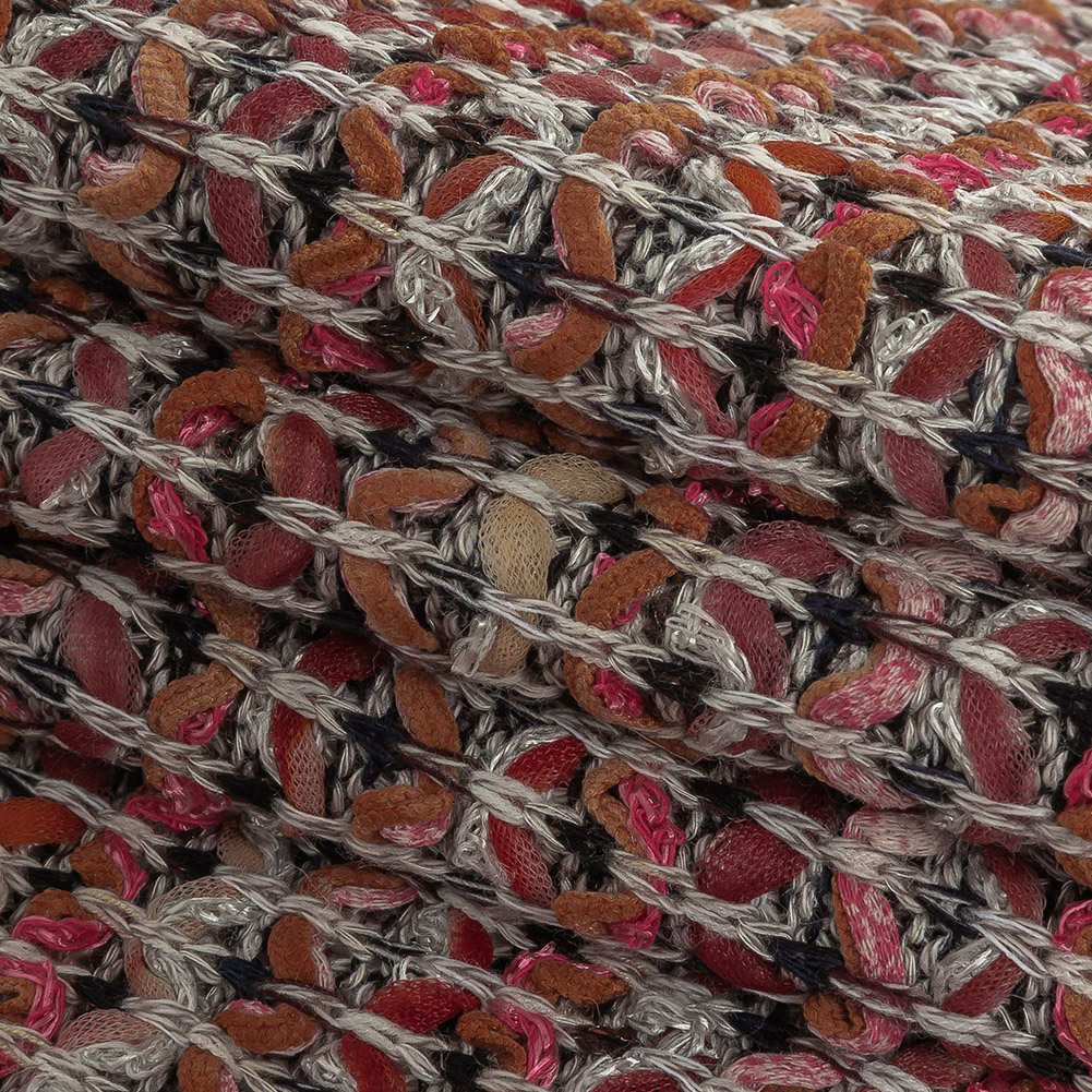 Evoke summery delight during colder months with our Pink, Peach, and Gray Textured Stripes Sweater Knit! Striking and joyful rows of coral, burnt orange, and hot pink define this knit while softer tones like navy, white, and light gray provide balance. Its hand is incredibly cozy and feels somewhat wooly, its drape is perfectly limp, and its 4-way stretch is ideal for a snug fit! Create vibrant turtlenecks to pair with leather boots and jeans, snug cardigans ideal for a slightly chilly day, and complimentary items like beanies and scarves. Featuring a slightly open-knit, this fabric does not require a lining but you may use one to achieve complete opacity.