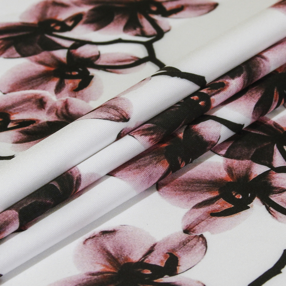 One thing we at Mood love about florals is that they never goes out of style; especially if it's recreated into an appealing print like this. X-rayed details of the tops of flowers create intricacies that will blow your mind in ways you don't understand. Along with the enticing image digitally implemented onto its surface, this material was assembled on Italian looms; thus providing the supreme quality found with this unbelievably soft neoprene. Smooth to the touch, this fabric is to die for. For those who are unfamiliar with neoprene altogether, this material is often used to create scuba-diving and surfing wetsuits or laptop slip covers due to the fact that it maintains its flexibility over a wide variety of temperatures and it displays an enormous amount of chemical stability. Neoprene has also been one of the biggest trends to hit the fashion network this year. This polyester and spandex blended neoprene contains a fantastic 1-way stretch in the weft and is completely opaque. Very thin, it's your turn to take a step forward in fashion and sport with this printed neoprene. Note: This neoprene is of a fashion weight and can also be referred to as a scuba knit.
