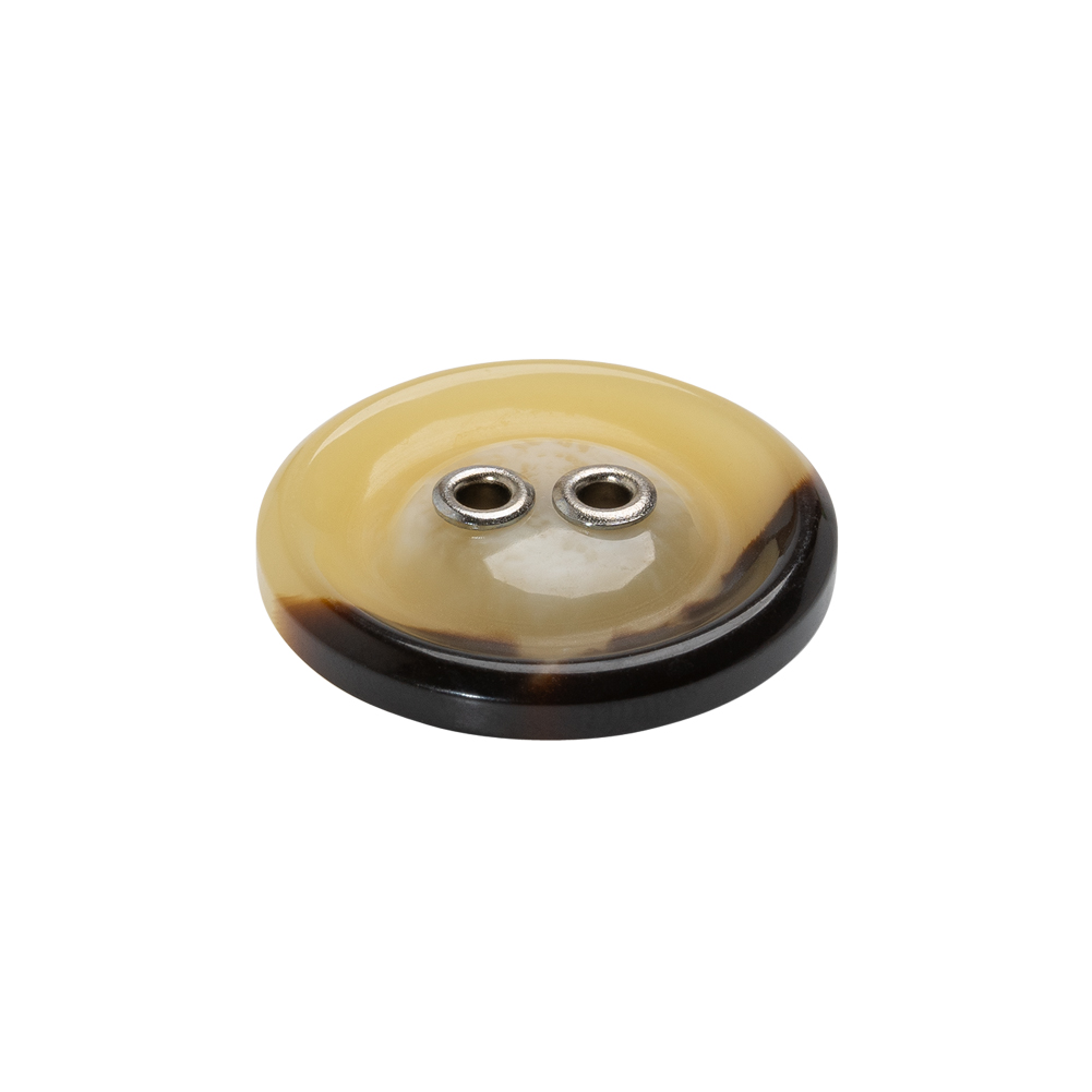 Plastic 2-Hole Button with Metal Eyelet Holes - 36L/23mm - Ivory and Brown