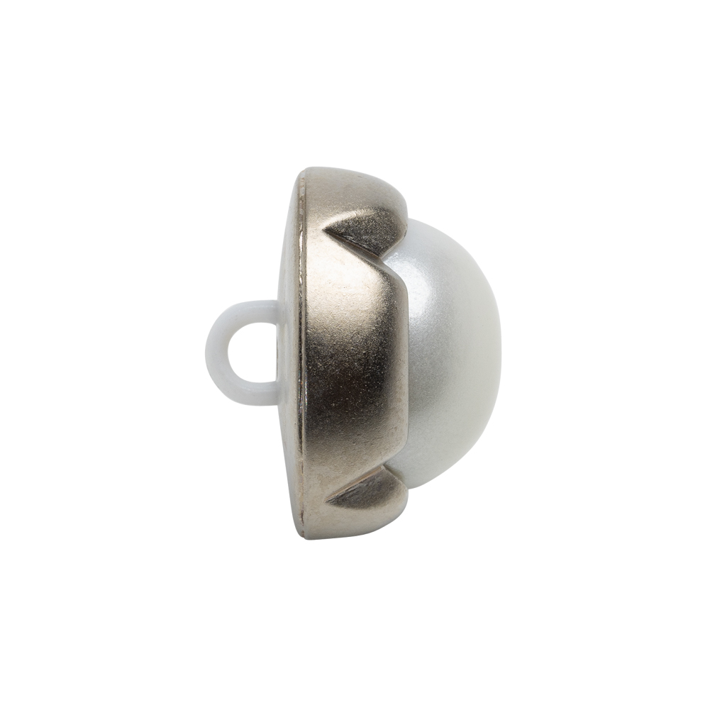 Plastic 2-Piece Shank Back Button – 36L/23mm – Silver and White Pearl Dome