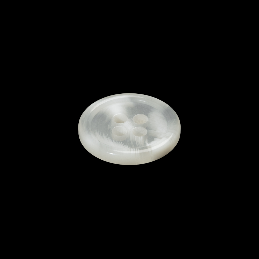 Plastic 4-Hole Button - 24L/15mm - Translucent White Swirls Rolled Rim