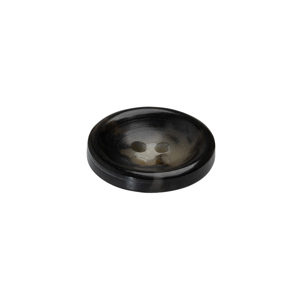 Plastic 4-Hole Button – 28L/18mm – Black and Beige Mottled Dish Shaped