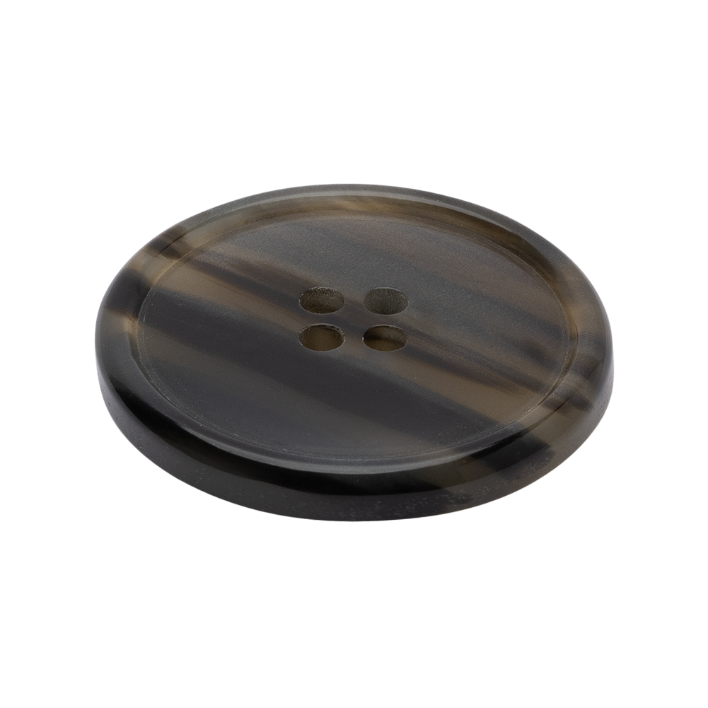 Plastic 4-Hole Button – 44L/28mm – Black and Brown Translucent Striations Narrow Rim