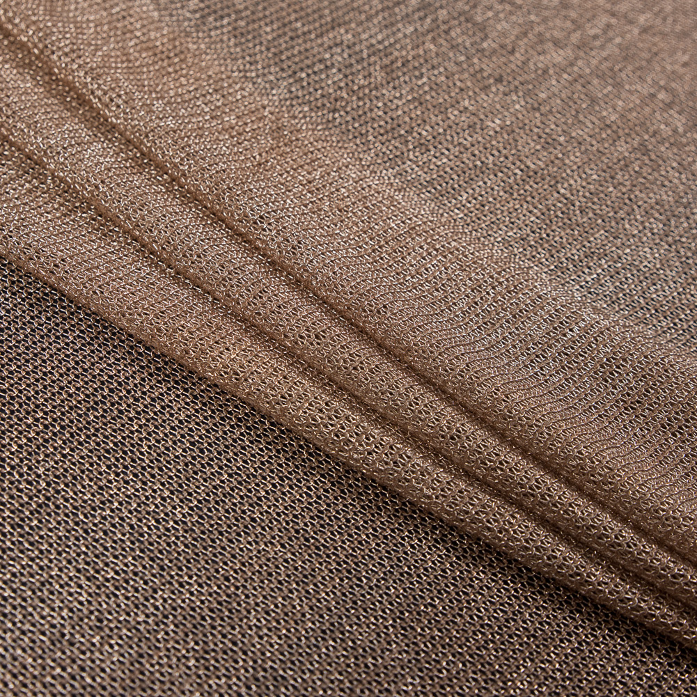 This Rose Gold Plastic Chainmail Fabric is a one-way ticket to a compelling Middle Earthling cosplay! This lustrous, luxurious metallic rose gold chainmail is made from synthetic fibers and knit into a compelling stretch mesh. Thin and of a medium weight, this chainmail comes with a crisp, cool hand and a fluid drape, while the 30% Lurex content gives it a captivating sheen. From Halloween and casual themed parties to Comic-Con and historical reenactments—use it for all of your cosplay and costuming ambitions. Note that it is inherently sheer and a lining may be added for opacity.