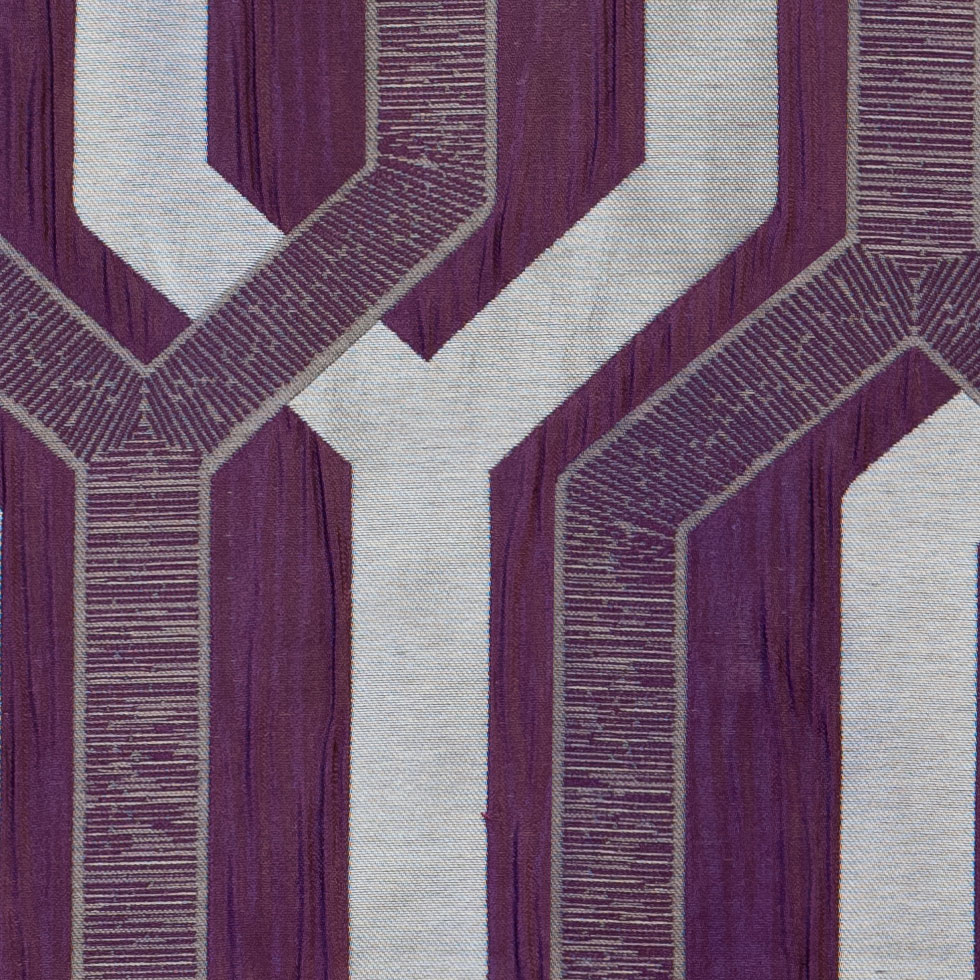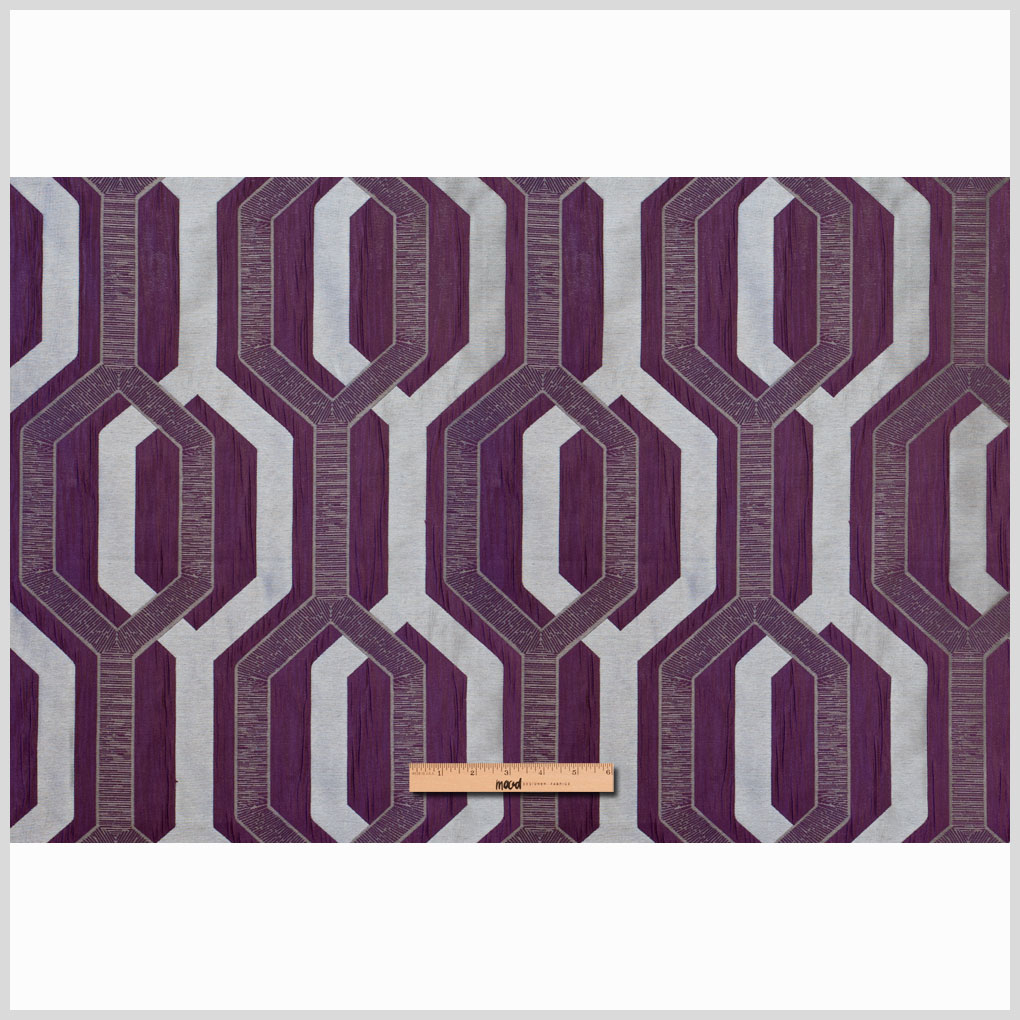 Texture variation is key on this fabulous medium-weight poly. Hexagons have either a subtle, ribbon-like feel or a horizontal texture that contrasts with the smooth woven background. Aubergine and gray, this fabric is best suited for light upholstery or drapery.