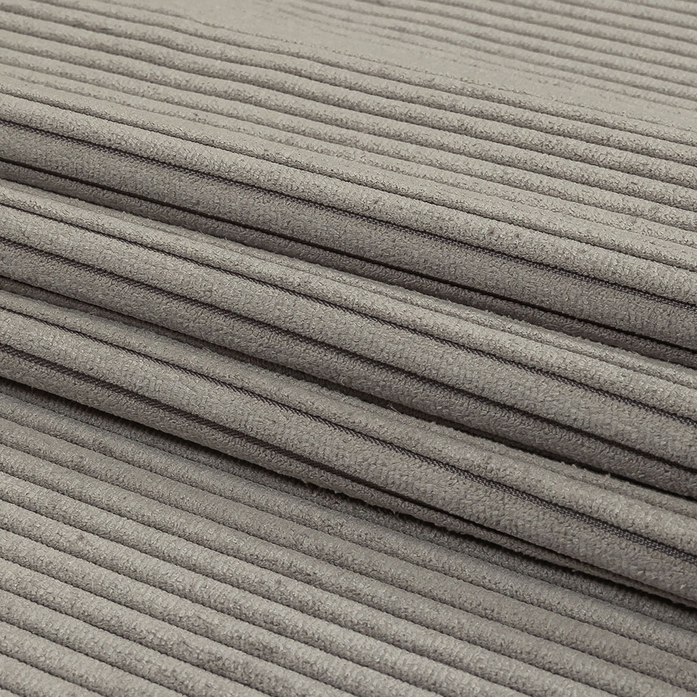 Give neutral tones a tactile twist with this British Imported Putty Plush Ribbed Velvet! Textural ribs run throughout a fuzzy, short-pile velvet, all finished in a medium gray coloring.
