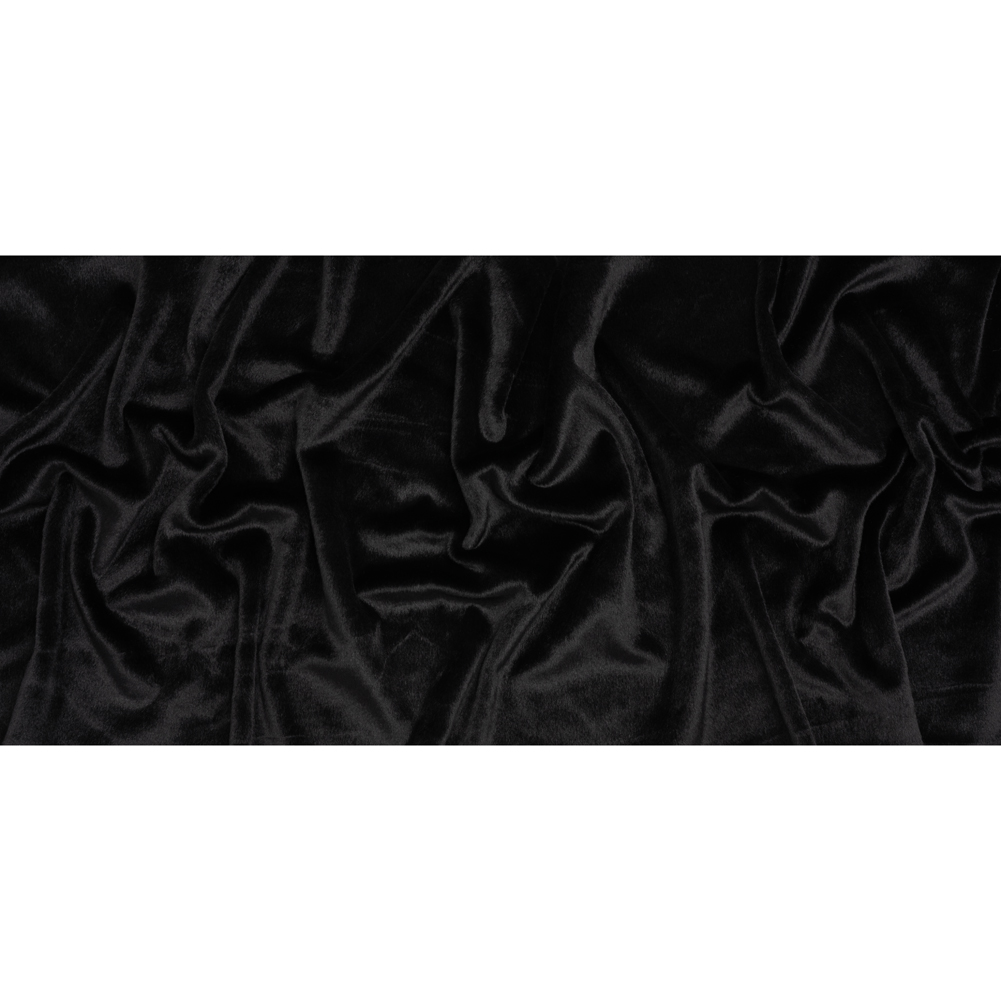 This Black Plush Short Pile Recycled Polyester Faux Fur pairs best with caviar and pearls. With a soft, fuzzy hand and supple drape, this fabric slips effortlessly into luxury—ready to cocoon you in comfort with every wear.Suggested Projects: Coats, Shrugs, Capes, VestsContent: 100% Recycled PolyesterStretch: NoneOpacity: OpaqueIf you yearn for all the finest things then you need this black short pile faux fur. This faux fur calls to be touched, its soft, fuzzy hand and supple drape wrapping you in pure luxury and comfort. Without stretch, it transforms effortlessly into sweeping coats, elegant shrugs, flowing capes, or even chic accents for hats, bags, and throws—bringing sophistication to every corner of your life. Opaque on its own, it doesn’t require a lining, though one may be added for an extra layer of comfort.Note: This fur’s pile measures approximately ¼ of an inch in length.
