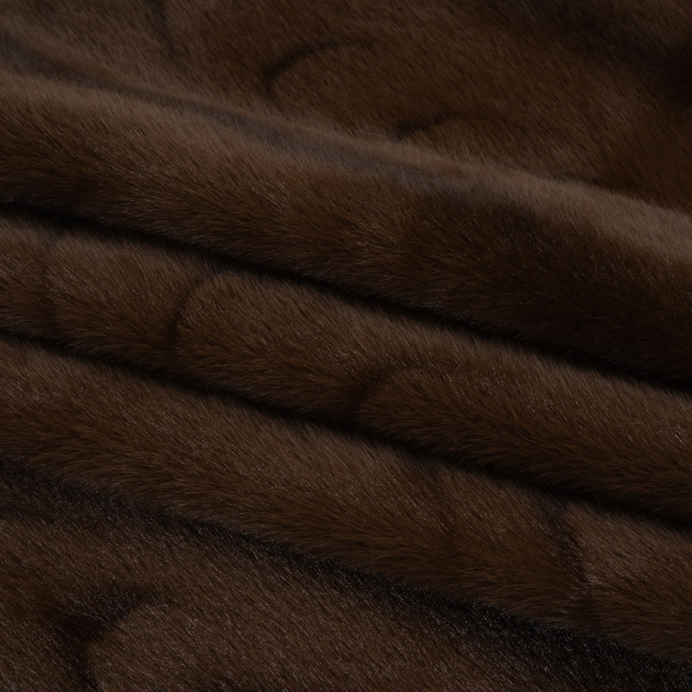 Explore nature’s delights, wrapped up in this Brown and Black Woodgrain Print Plush Short Pile Recycled Polyester Faux Fur. With a soft, fuzzy hand and supple drape, this fabric slips effortlessly into luxury—ready to cocoon you in comfort with every wear.Suggested Projects: Coats, Shrugs, Capes, VestsContent: 100% Recycled PolyesterStretch: Warpwise Mechanical GiveOpacity: OpaqueDark brown loops and stripes ripple across the rich brown base of this short-pile faux fur, creating a striking, organic woodgrain effect. This faux fur calls to be touched, its soft, fuzzy hand and flexible drape wrapping you in pure luxury and comfort. With a delicate give through the warp for ease of movement, it transforms effortlessly into sweeping coats, elegant shrugs, flowing capes, or even chic accents for hats, bags, and throws—bringing sophistication to every corner of your life. Opaque on its own, it doesn’t require a lining, though one may be added for an extra layer of comfort.Note: This fur’s pile measures approximately ¼ of an inch in length.