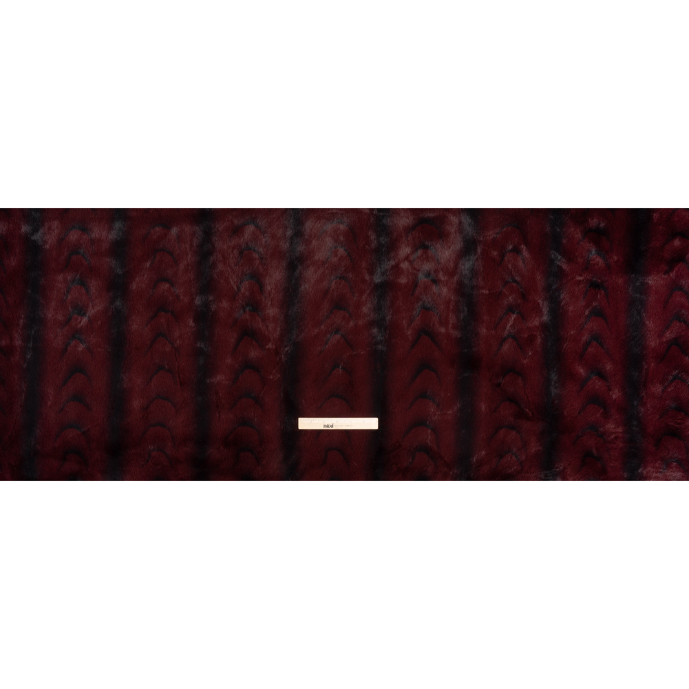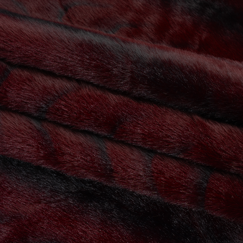 Romantic nights full of wine and cheeks rosy from merriment begin with this Burgundy and Black Woodgrain Print Plush Short Pile Recycled Polyester Faux Fur.
