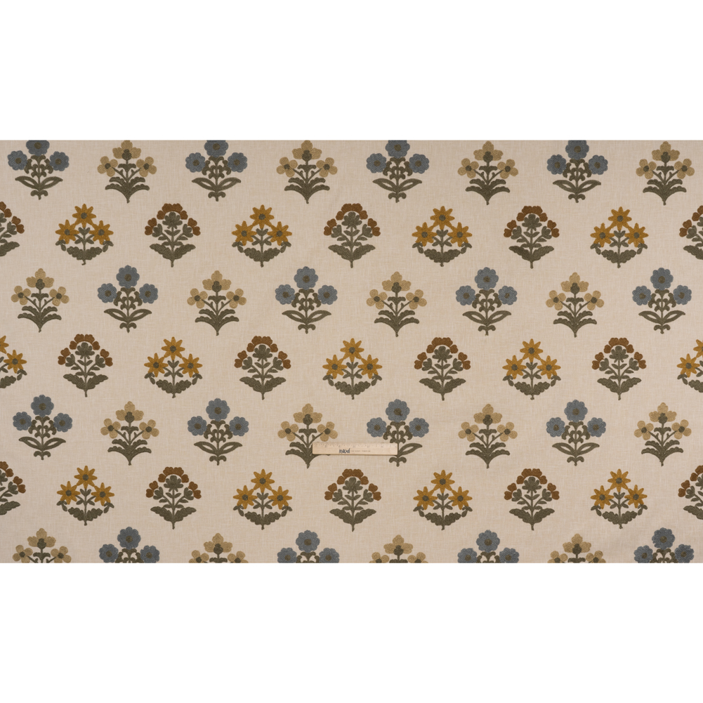 Follow your creativity through its twists and turns towards this Maize Simple Flowers Embroidered Slubbed Drapery Woven—featuring a soft, tactile hand and voluminous drape.Suggested Projects: Curtains, Drapes, Valances, Throw PillowsContent: 52% Polyester, 48% Cotton; 100% Viscose EmbroideryStretch: NoneOpacity: TranslucentDelicate wildflowers bloom in embroidered hues of rich yellow, brown, blue, beige, and olive green atop a beige ground. With its soft, tactile hand—enhanced by a slubbed weave and raised embroidery—and voluminous drape, it’s perfect for floor-grazing curtains, flowing drapes, relaxed valances, and chic throw pillows. Translucent and airy, it pairs beautifully with a lining for added softness and sun protection.Please Note: 51” of the width is usable.