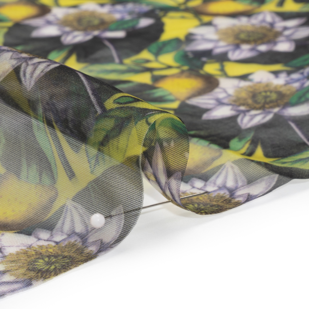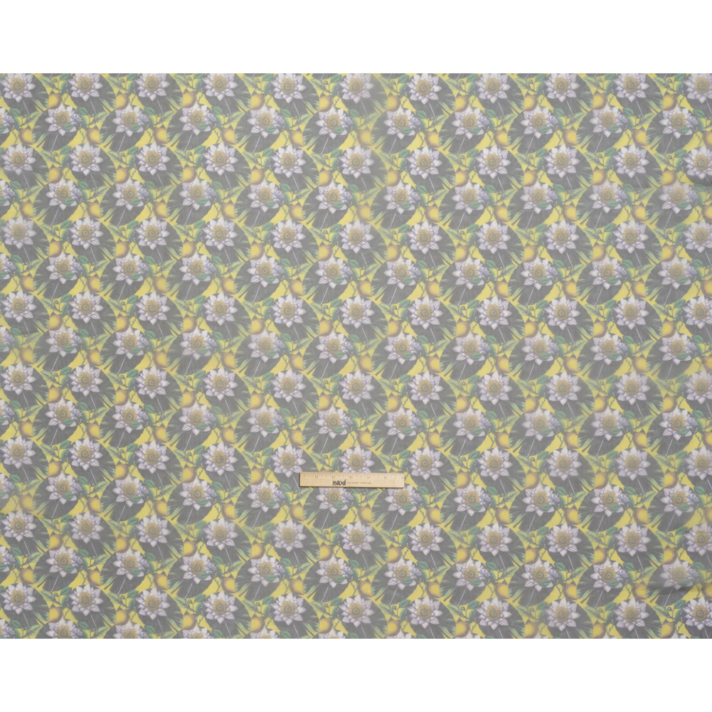 Polyester and Viscose Organza - Yellow and Green Lemons and Lily Pads