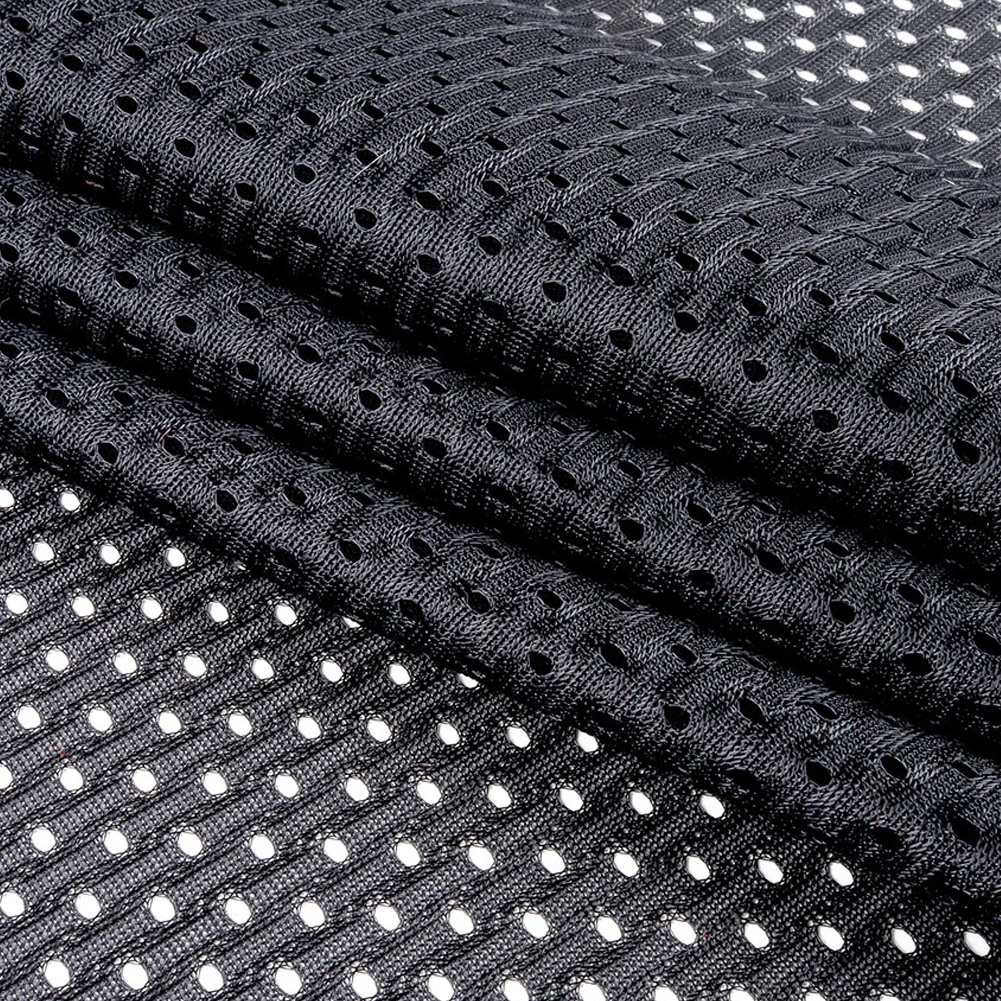 You can’t go wrong with this Heracles Black Polyester Athletic Mesh! A knit construction is marked by a diagonal grid of oval perforations and a subtle striped pattern, giving this mesh a uniquely textural appearance and excellent breathability.