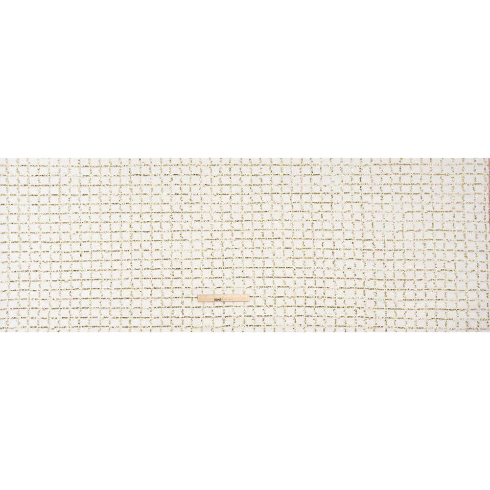 Polyester Boucle Tweed with Plaid Metallic Eyelash Fringe - White and Gold - Deadstock