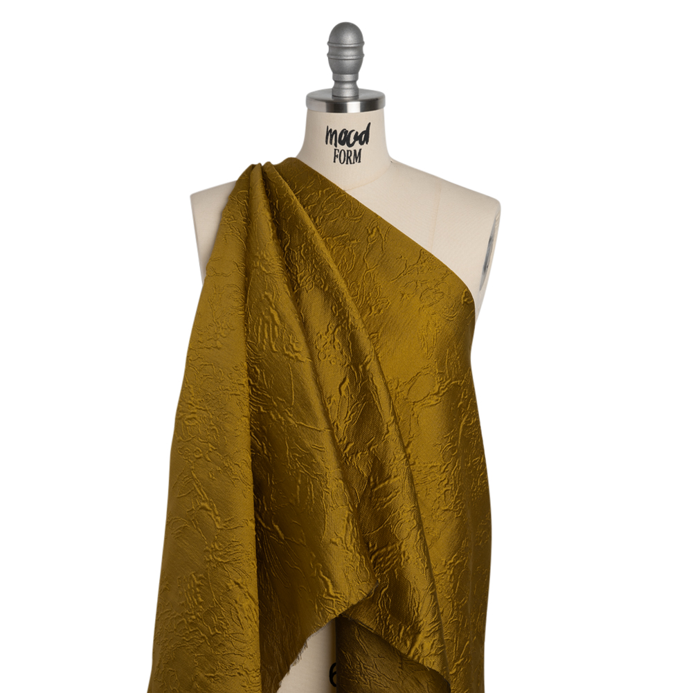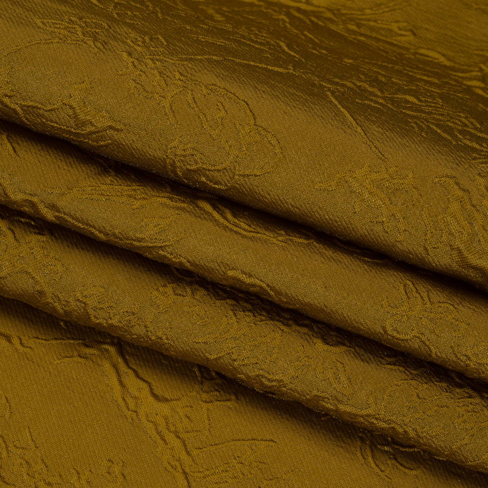 Always feel like a winner when you wear this Monochrome Gold Floral Drawings Polyester Brocade—featuring a sleek, tactile hand and airy drape.Suggested Projects: Corsets, Gowns, Skirts, JacketsContent: 100% PolyesterStretch: NoneOpacity: TranslucentFloral drawings give an embossed look on the gold surface, their puffed appearance lending rich visual and tactile dimension. The feel of the face is both sleek and pebbly, and the drape is airy and slightly structured. Invite this monochrome fabric to special occasions and glitzy nights out as a long gown, circle skirt, structured jacket, exciting corset, and more! As this fabric is translucent, a lining is recommended to increase opacity and luxury!