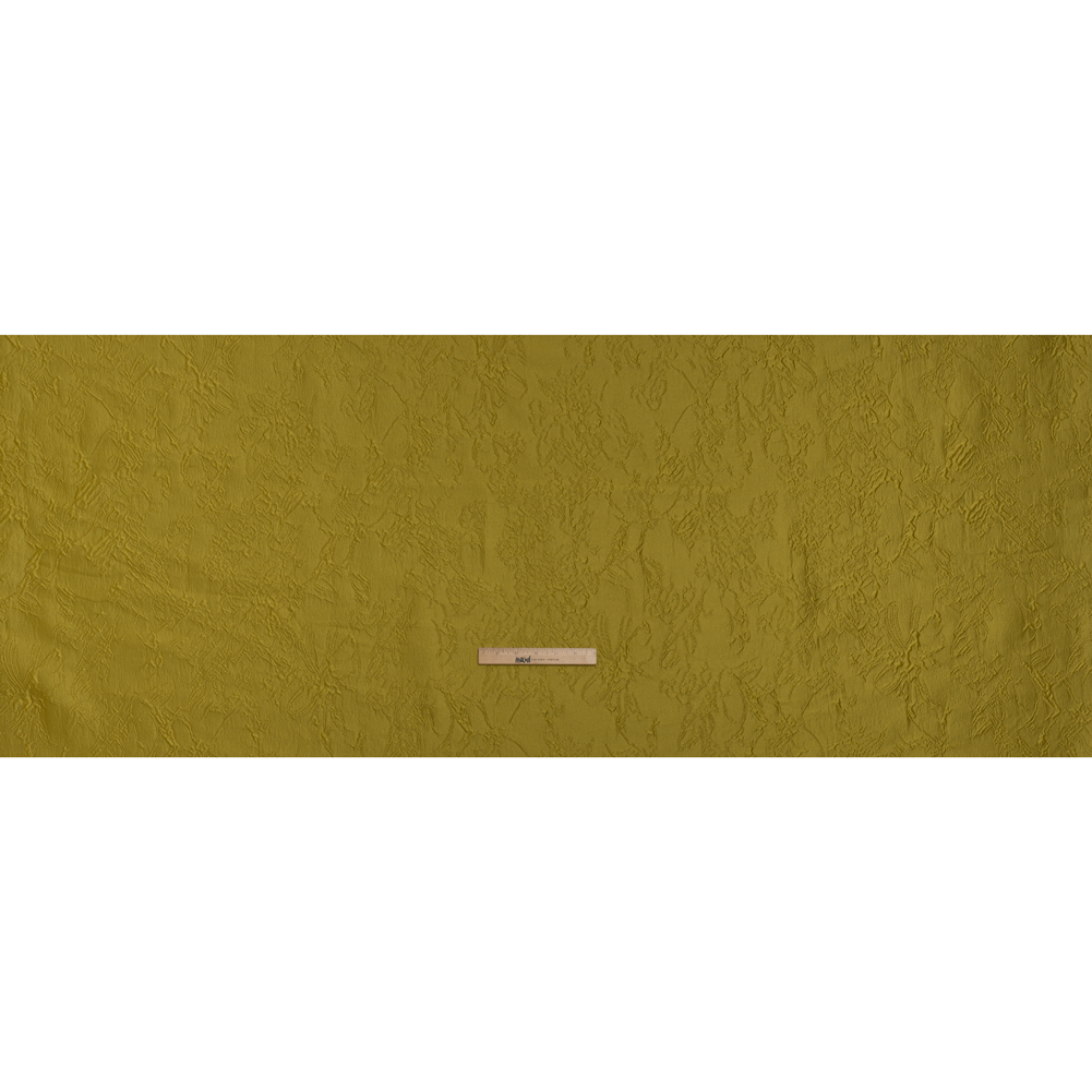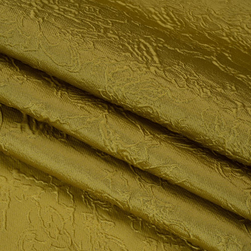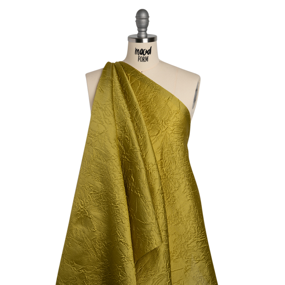 Stand tall and proud in this Monochrome Golden Yellow Floral Drawings Polyester Brocade—featuring a sleek, tactile hand and airy drape.Suggested Projects: Corsets, Gowns, Skirts, JacketsContent: 100% PolyesterStretch: NoneOpacity: TranslucentFloral drawings give an embossed look on the golden yellow surface, their puffed appearance lending rich visual and tactile dimension. The feel of the face is both sleek and pebbly, and the drape is airy and slightly structured. Invite this monochrome fabric to special occasions and glitzy nights out as a long gown, circle skirt, structured jacket, exciting corset, and more! As this fabric is translucent, a lining is recommended to increase opacity and luxury!