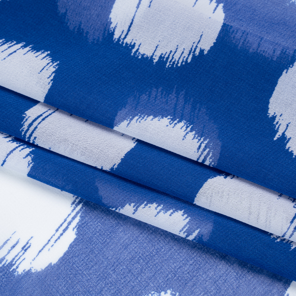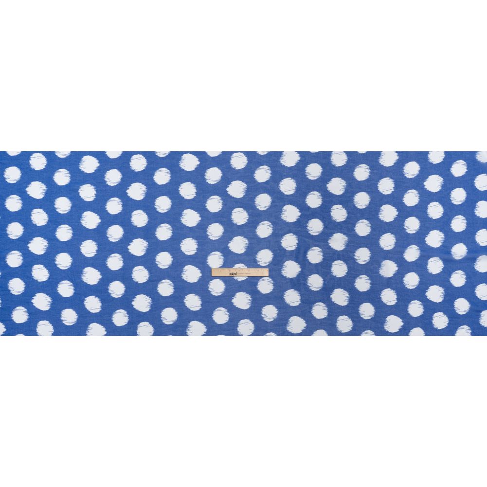 Polyester Chiffon - Cobalt Blue and White Brushed Polka Dots - Designer Deadstock