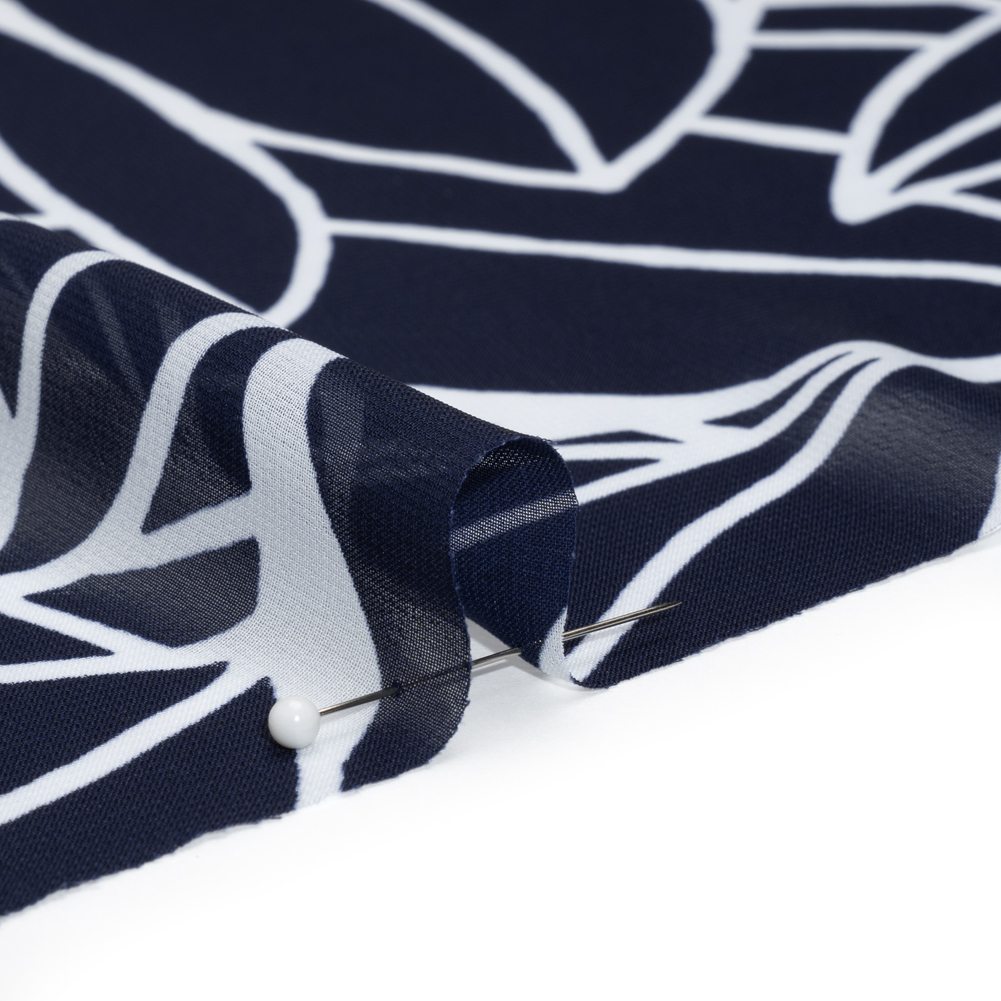 Polyester Chiffon – Navy Blue and White Overlapping Leaves – Designer Deadstock