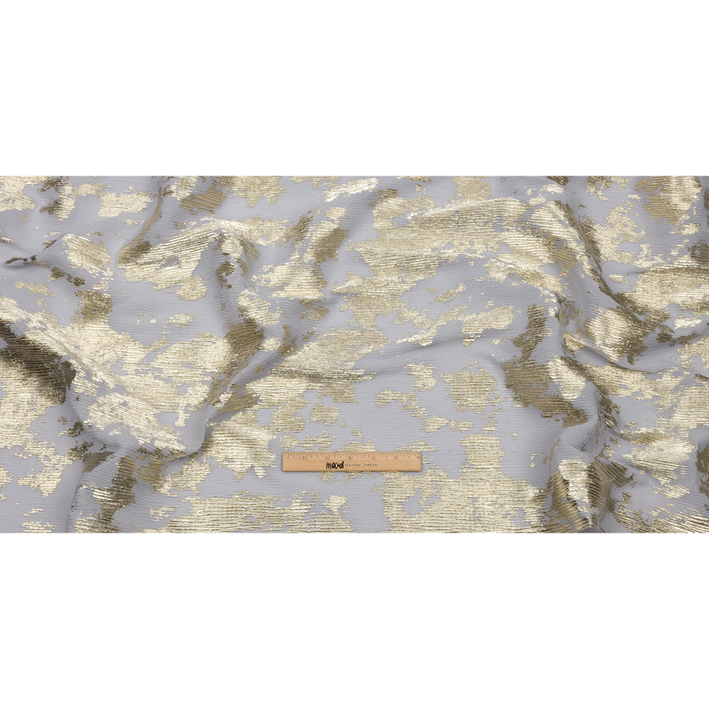Polyester Chiffon Plisse with Abstract Gold Foiling - Gray - Aralia Collection