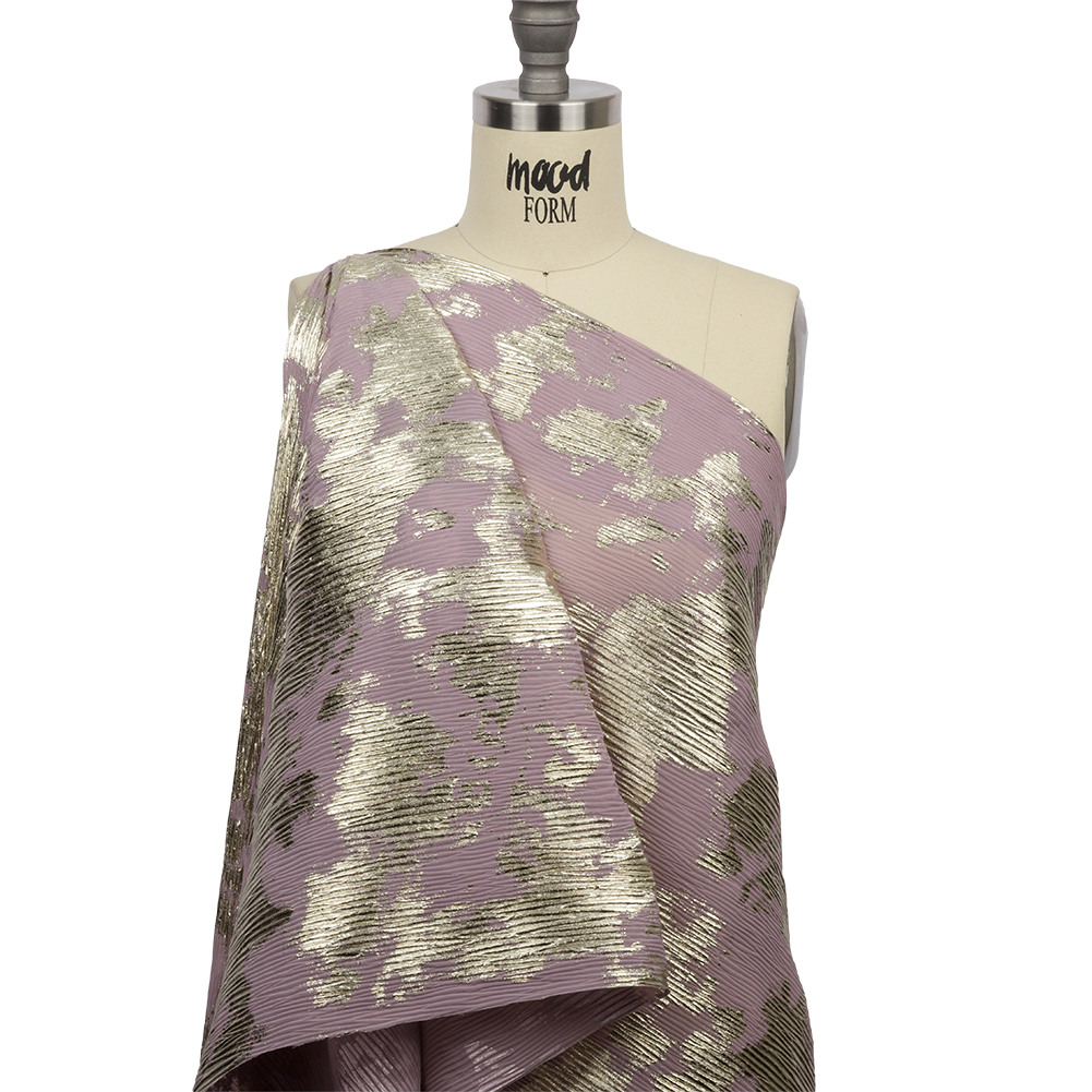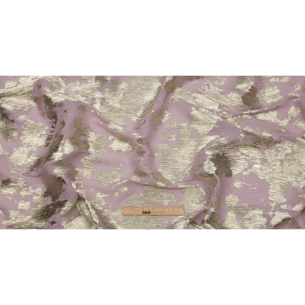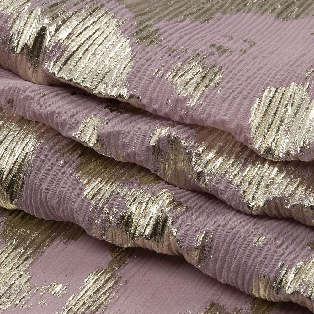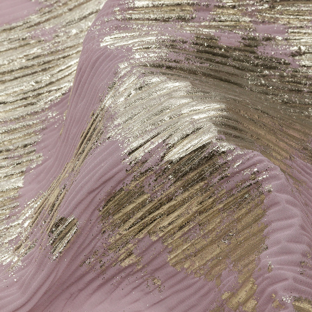 Polyester Chiffon Plisse with Abstract Gold Foiling - Mauve - Aralia Collection