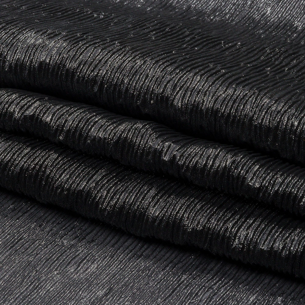 Polyester Chiffon Plisse with All-Over Foil - Black and Silver - Honey Collection