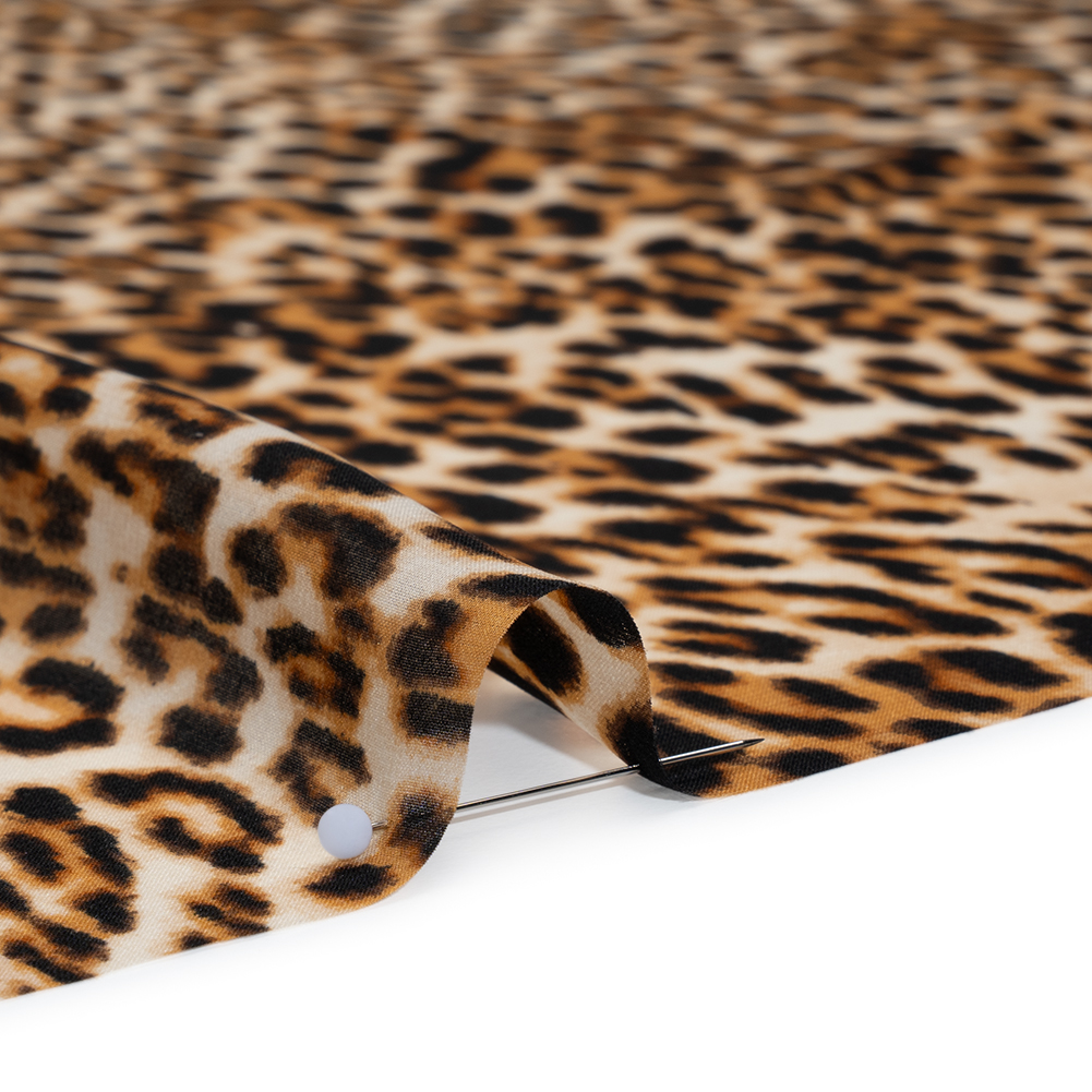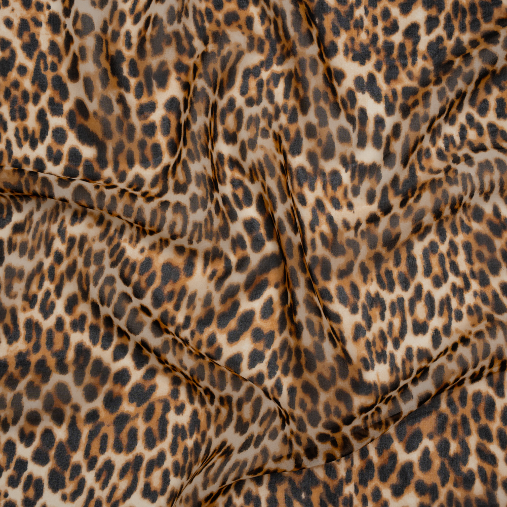 You’ll be the most elegantly dressed on your safari with this Leopard Spots Polyester Chiffon Print—featuring a soft, smooth hand and airy drape.Suggested Projects: Dresses, Skirts, Shirts, BlousesContent: 100% PolyesterStretch: NoneOpacity: SheerFeel your creativity go wild when you gaze upon the beige, brown, and black leopard spotted print atop this chiffon. Lightweight with a soft, smooth hand and airy, graceful drape, this fabric is destined for ethereal overlays, sweeping evening gowns, floaty summer dresses, delicate scarves, and whisper-soft blouses. Sheer and without stretch, a lining may be added for opacity and form depending on your design.