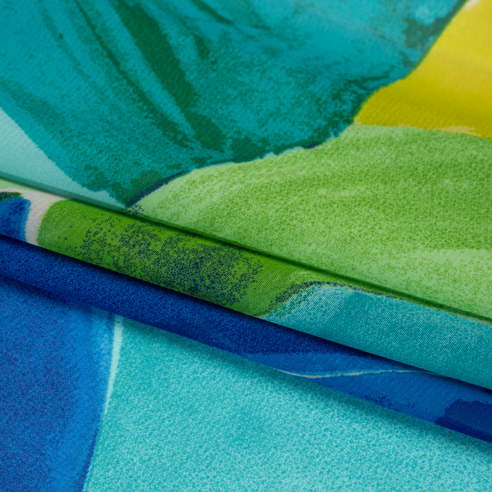 Let your inner artist out with this Painterly Flowers and Leaves Polyester Chiffon Print, featuring a dry hand and fluid drape.Suggested Projects: Dresses, Skirts, Shirts, BlousesContent: 100% PolyesterStretch: NoneOpacity: SheerRoyal blue, turquoise, green, and chartreuse flowers and leaves are painted atop a blank chiffon canvas. With a dry hand and fluid drape, design eye-catching overlays for evening gowns, flowing summer dresses, scarves, skirts, and sheer blouses. Sheer and without stretch, a lining may be added for opacity and structure where desired.