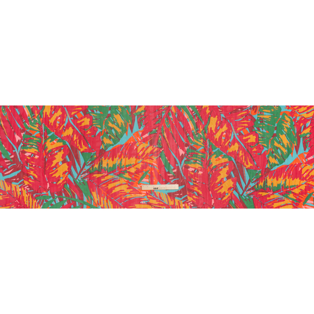 Polyester Chiffon Print - Red, Green and Yellow Tropical Leaves - Designer Deadstock
